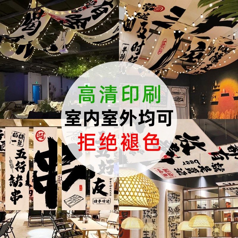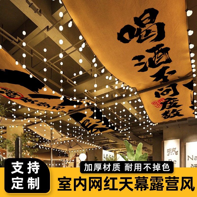 室内网红餐厅氛围装饰吊顶挂布定制酒馆天幕旗帜设计国风咖啡复古