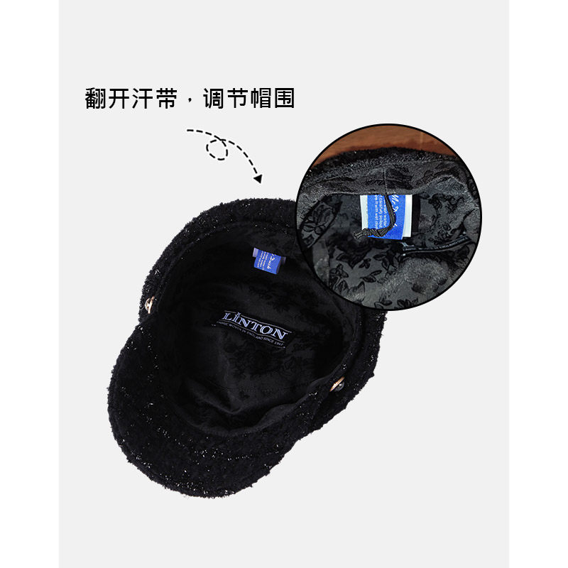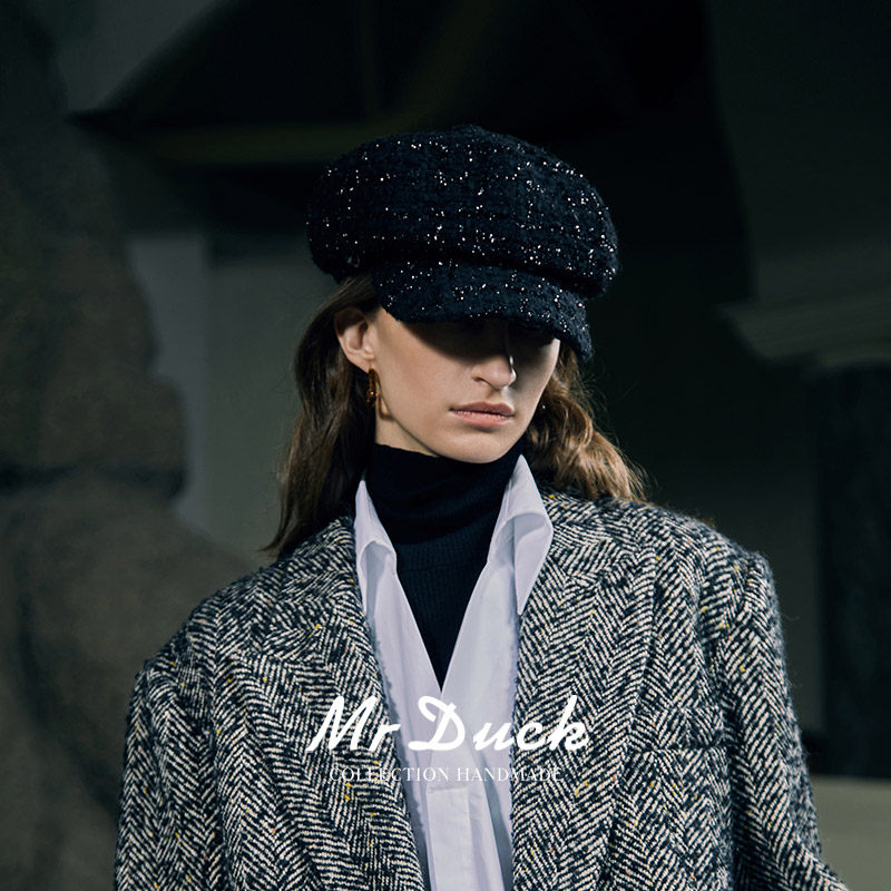 mrduck 英国LINTON限量黑标系列 高奢定制粗花呢小香风报童帽子女