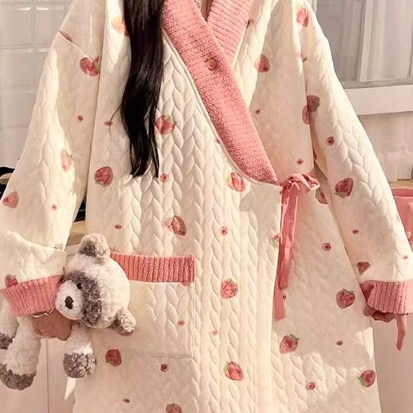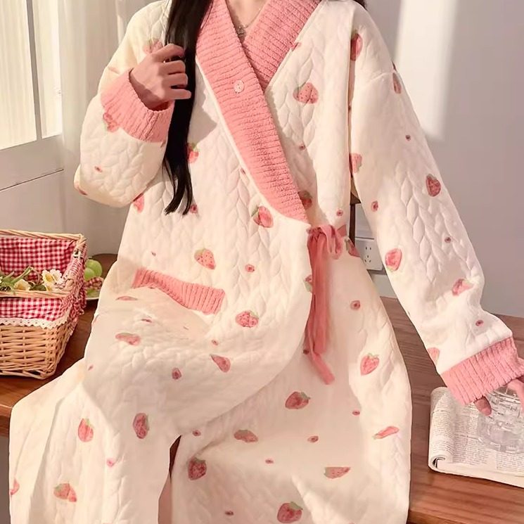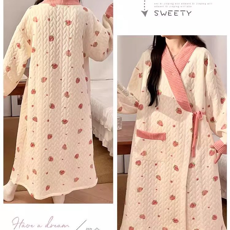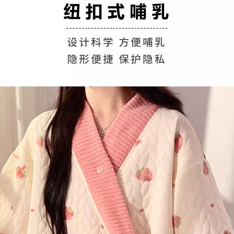 婧麒哺乳睡裙孕妇睡衣秋冬加厚空气层待产裙喂奶连衣裙产后月子服