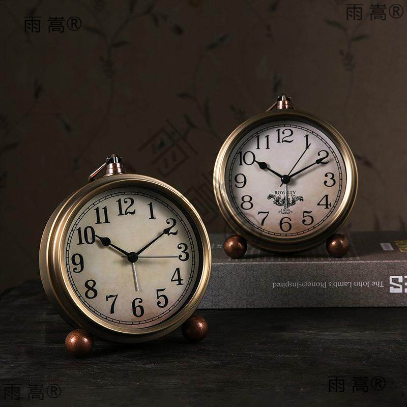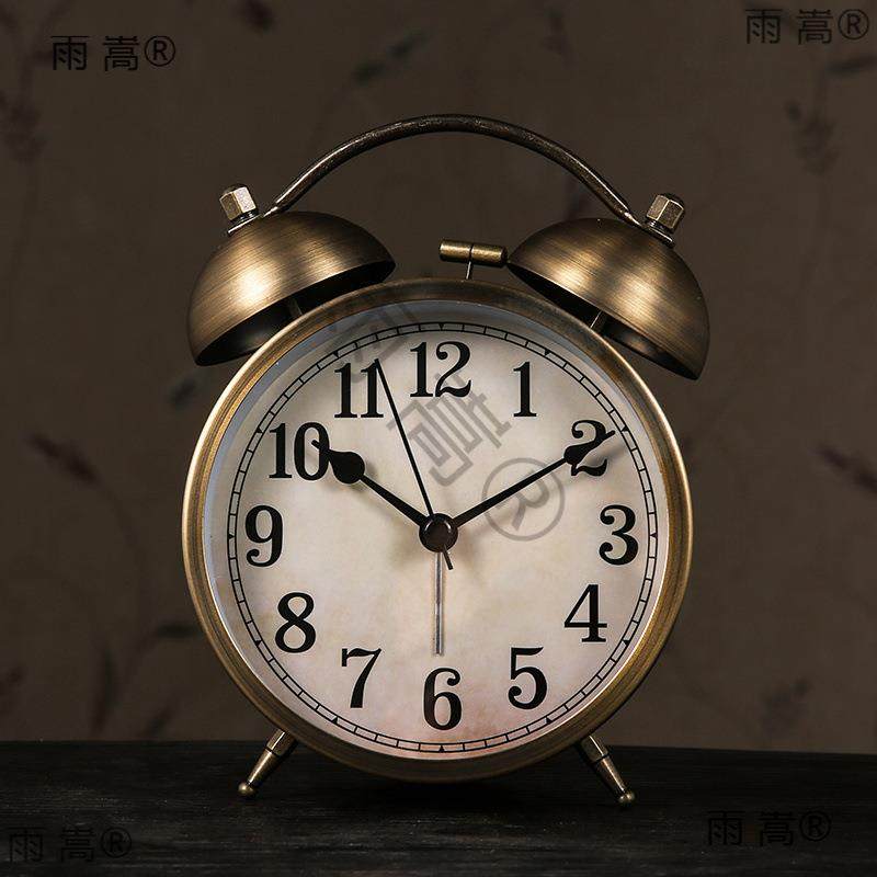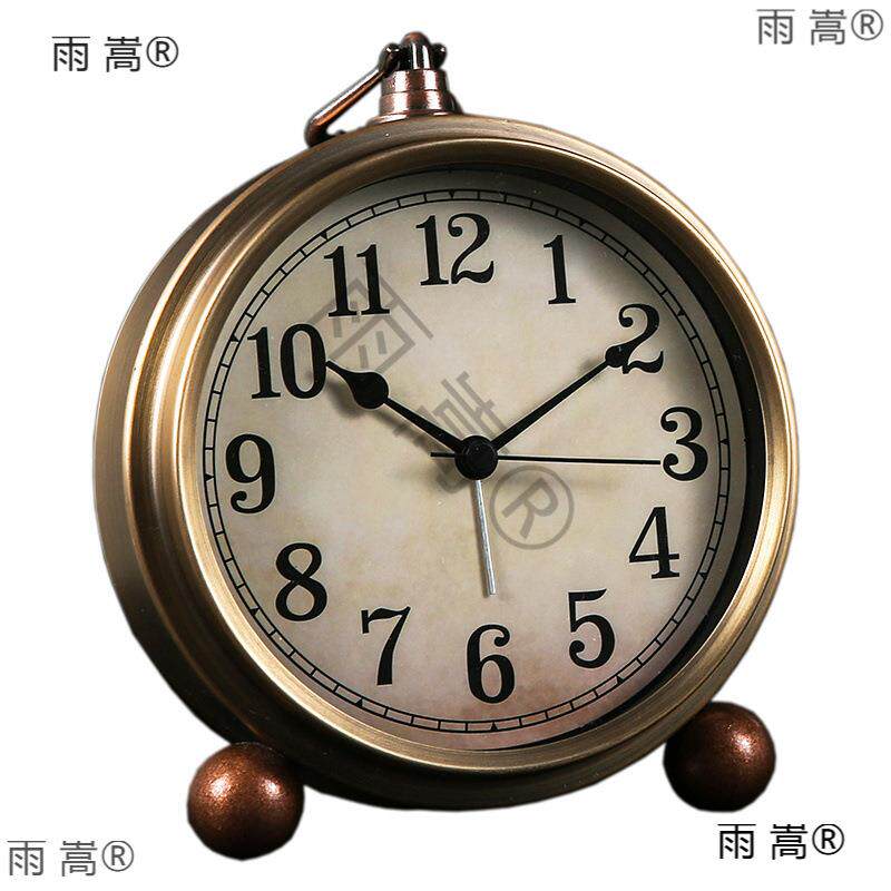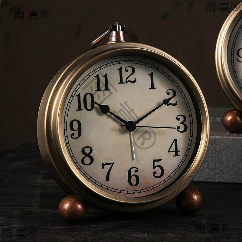轻奢风复古小台钟闹钟表金属镀铜老式经典学生用床头书桌装饰摆件