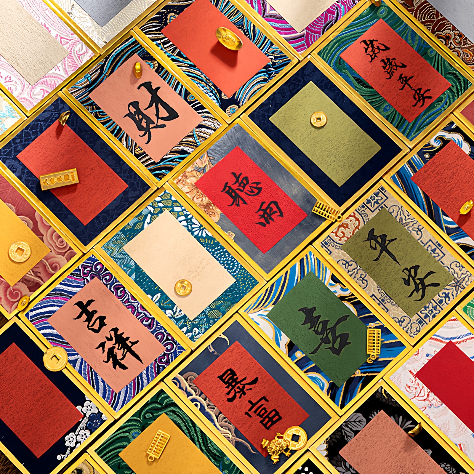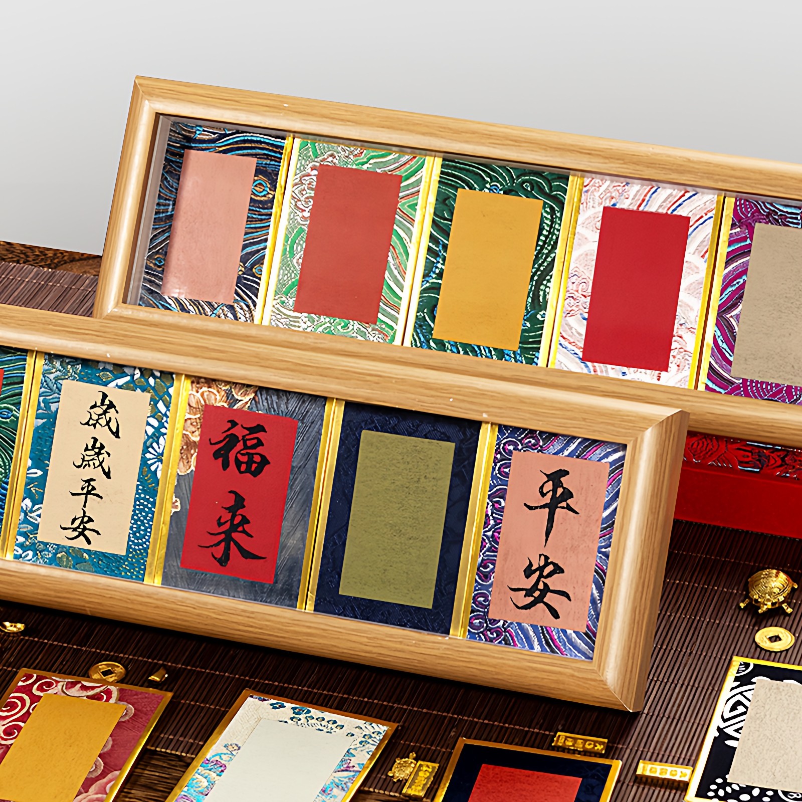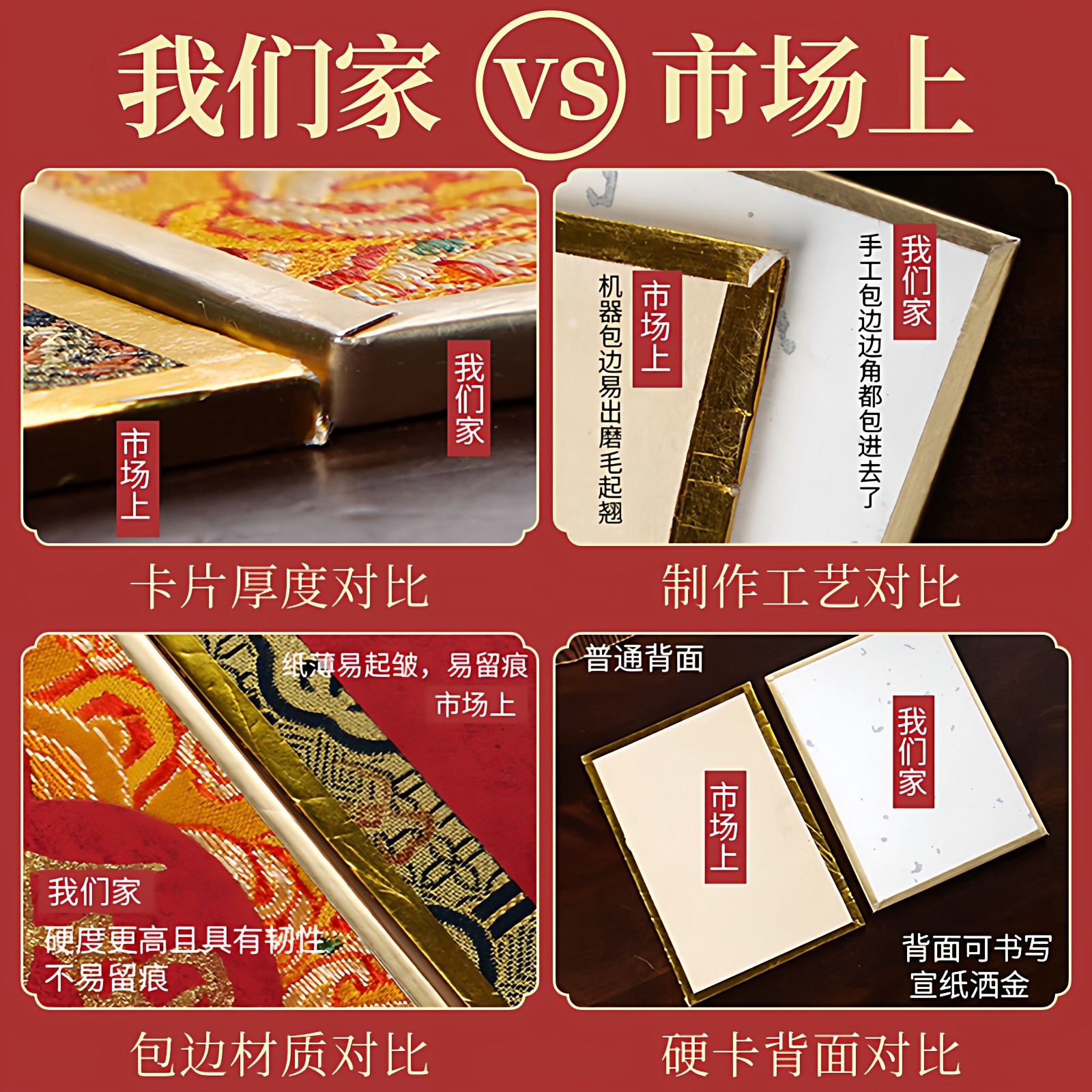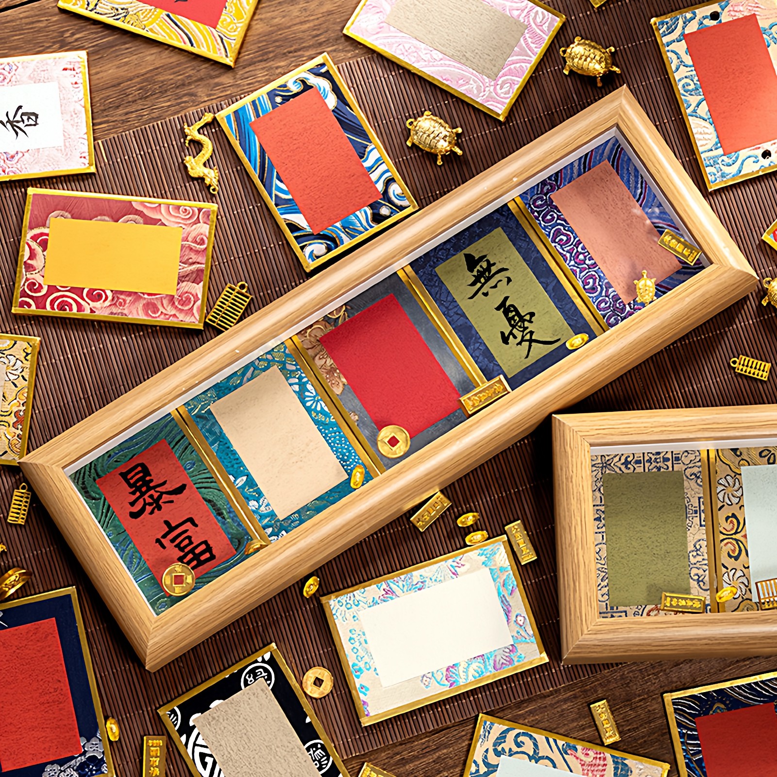 宋锦迷你硬卡摆台书法摆件宣纸卡纸桌面装饰相框台画书法文创手写diy字画创意空白挂件毛笔彩色蜡染楮笺卡片