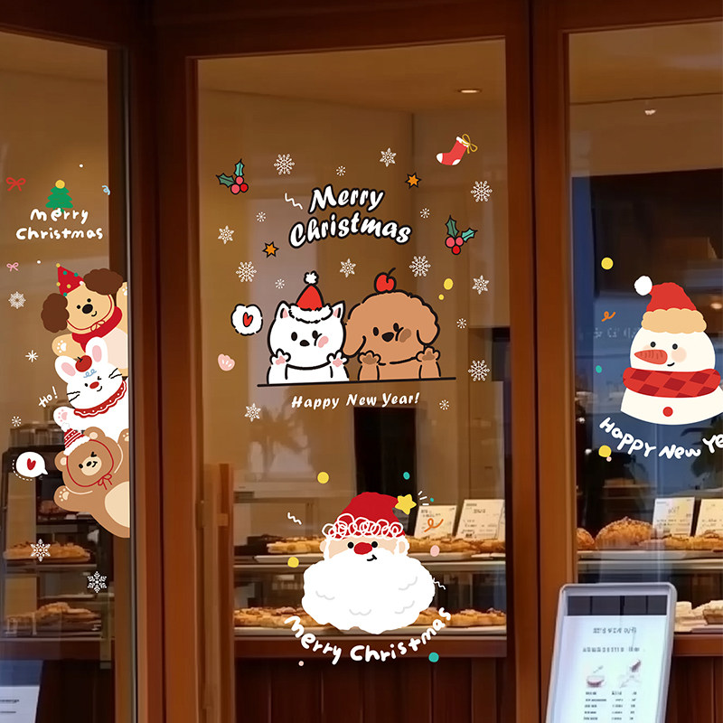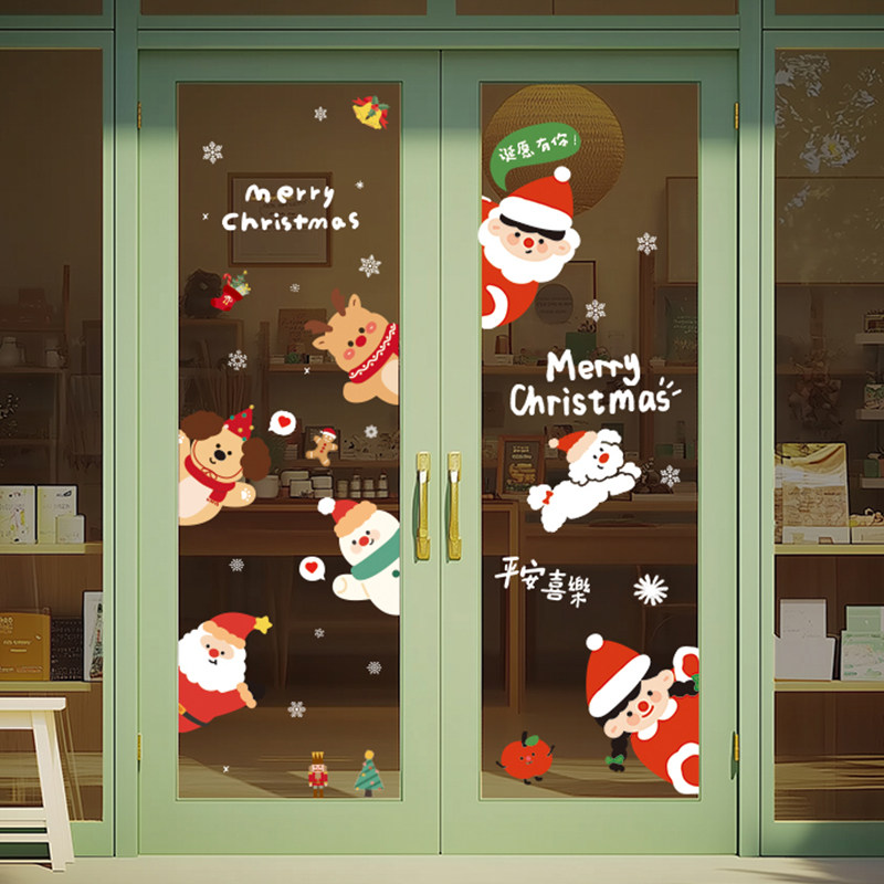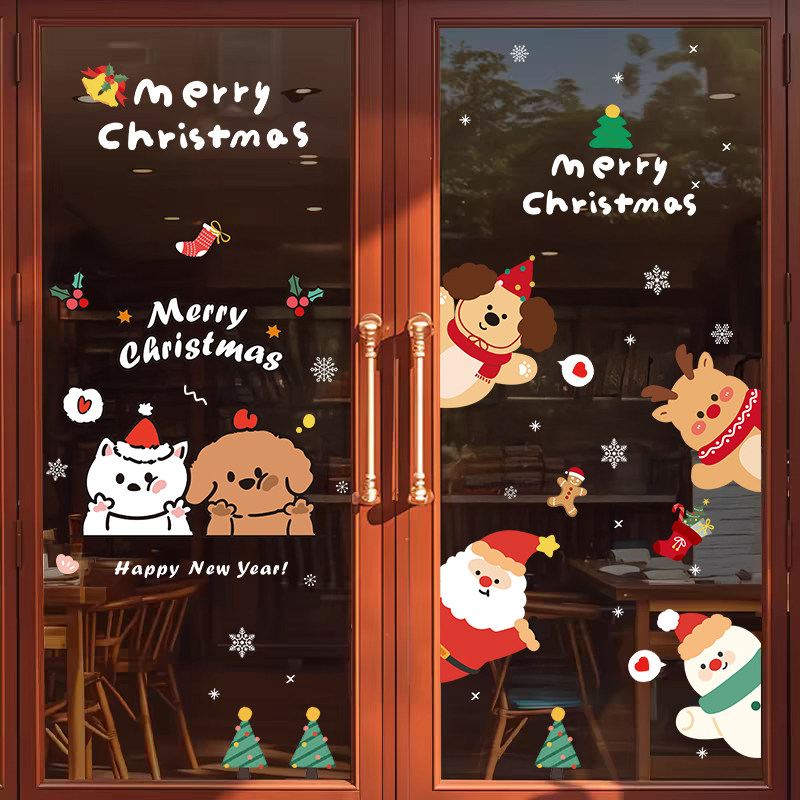 圣诞节装饰品玻璃贴纸静电贴圣诞场景氛围布置雪花窗贴2026年新款