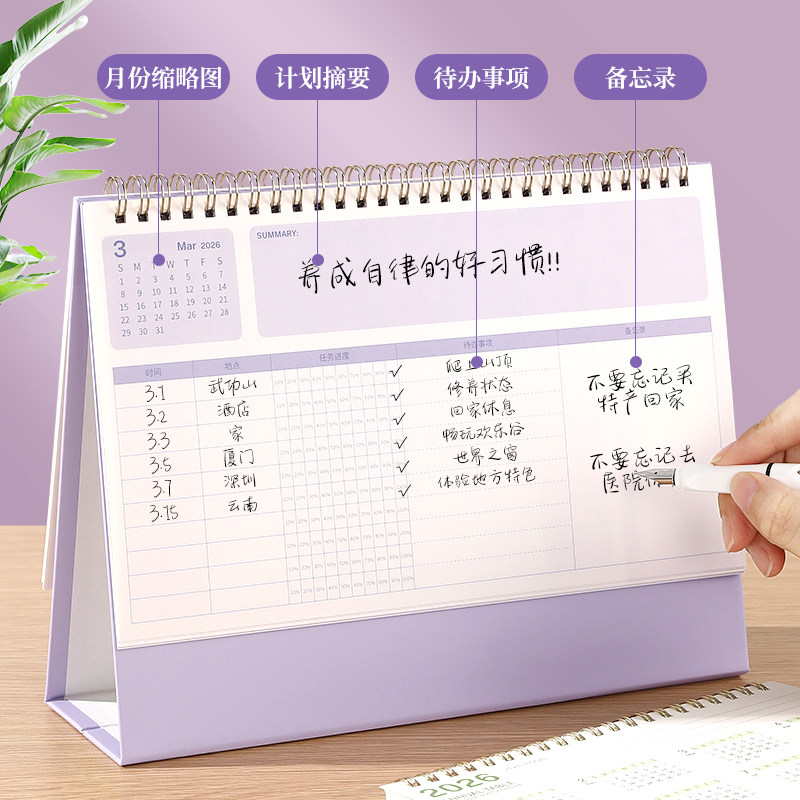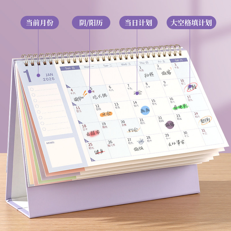 台历2026年新款日历定制logo创意简约小清新韩式办公年历个性中国风桌面摆件商务工作记事计划本订制广告月历