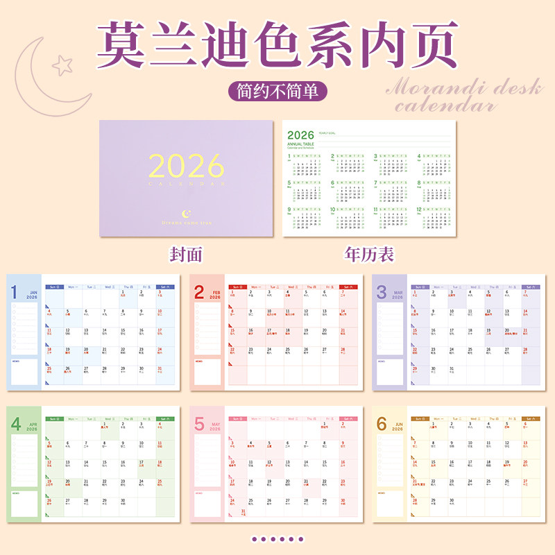 莫兰迪台历2026年新款创意桌面摆件小日历定制商务办公简约ins风工作打卡自律学习计划大格子记事本订制定做