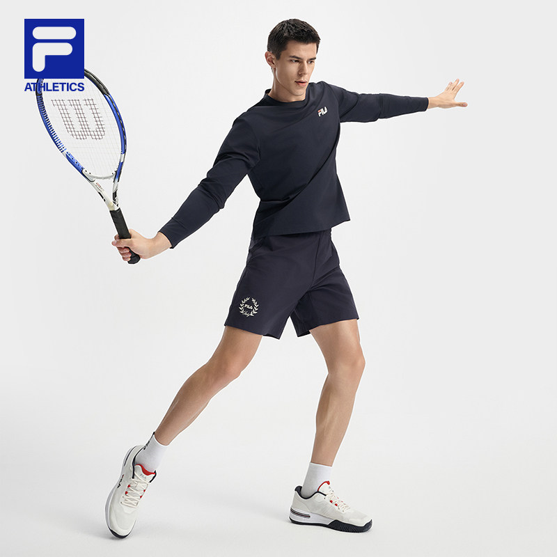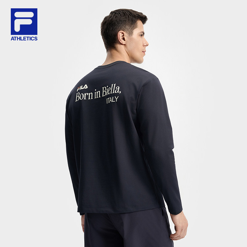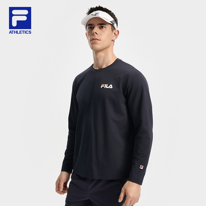 FILA 斐乐官方男针织长袖T恤秋季新款网球运动宽松圆领长袖衫上衣