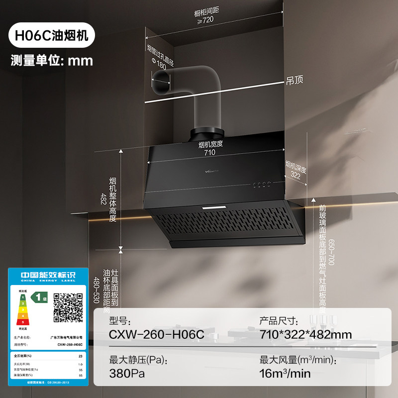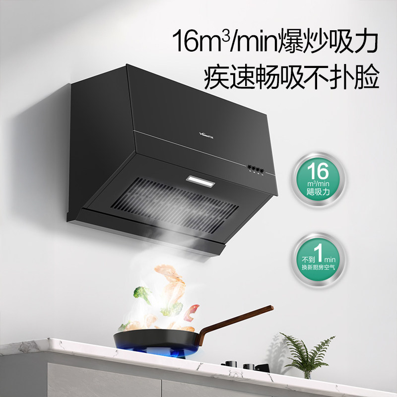 [政府补贴]万和家用厨房小型大吸力抽风机新中式抽油烟机H06C