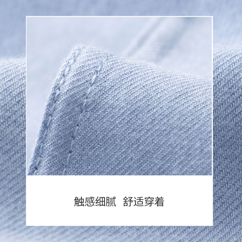 2023年秋季长袖浅蓝休闲衬衫外贸出口余单真品撤标高级感男装上衣