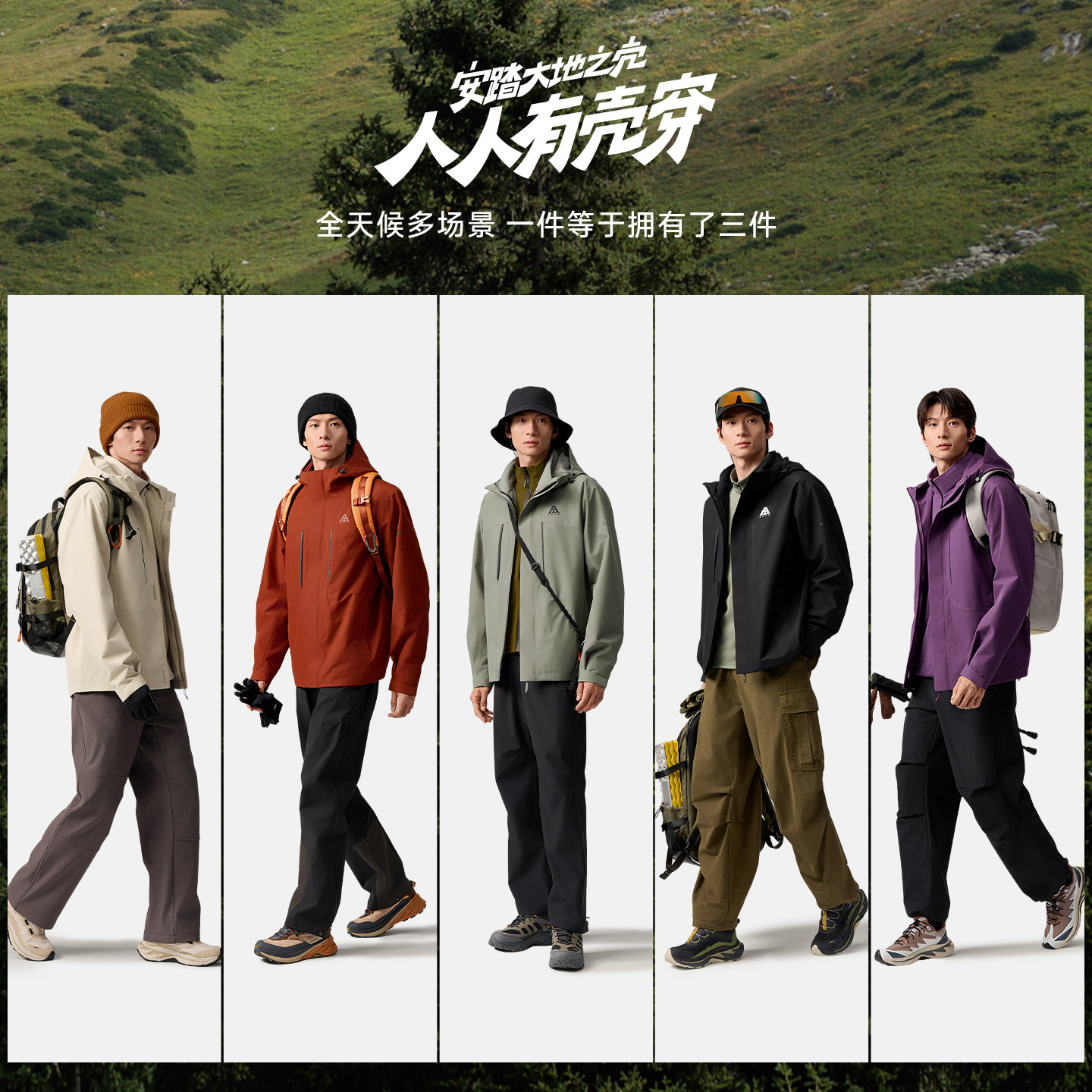 安踏三合一冲锋衣丨大地之壳男士户外防风防水登山服男款加绒外套