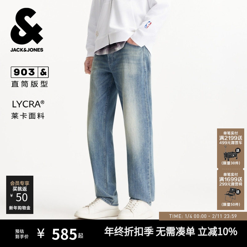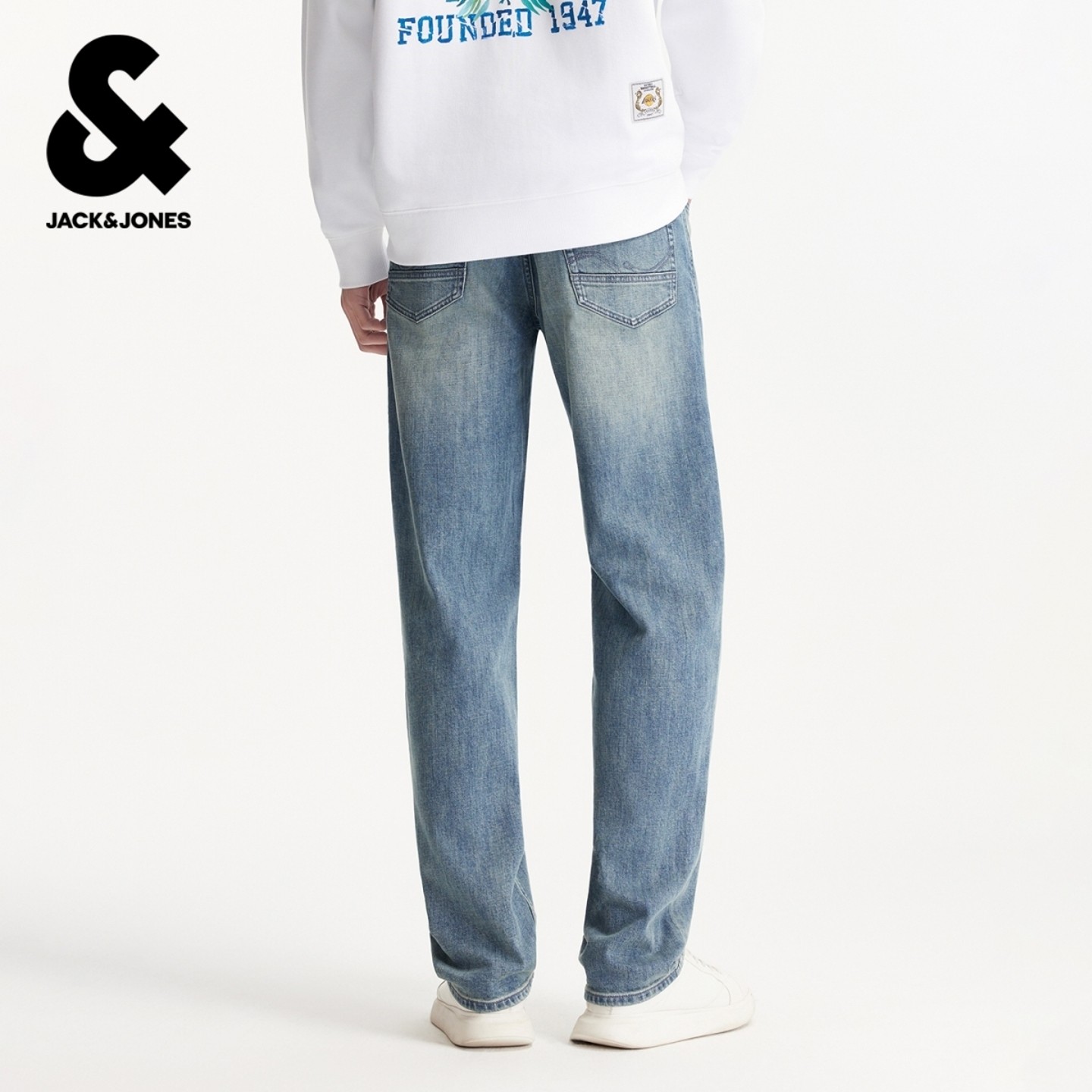 杰克琼斯春季男装牛仔裤直筒版型水洗猫须时尚百搭潮流下装裤子长