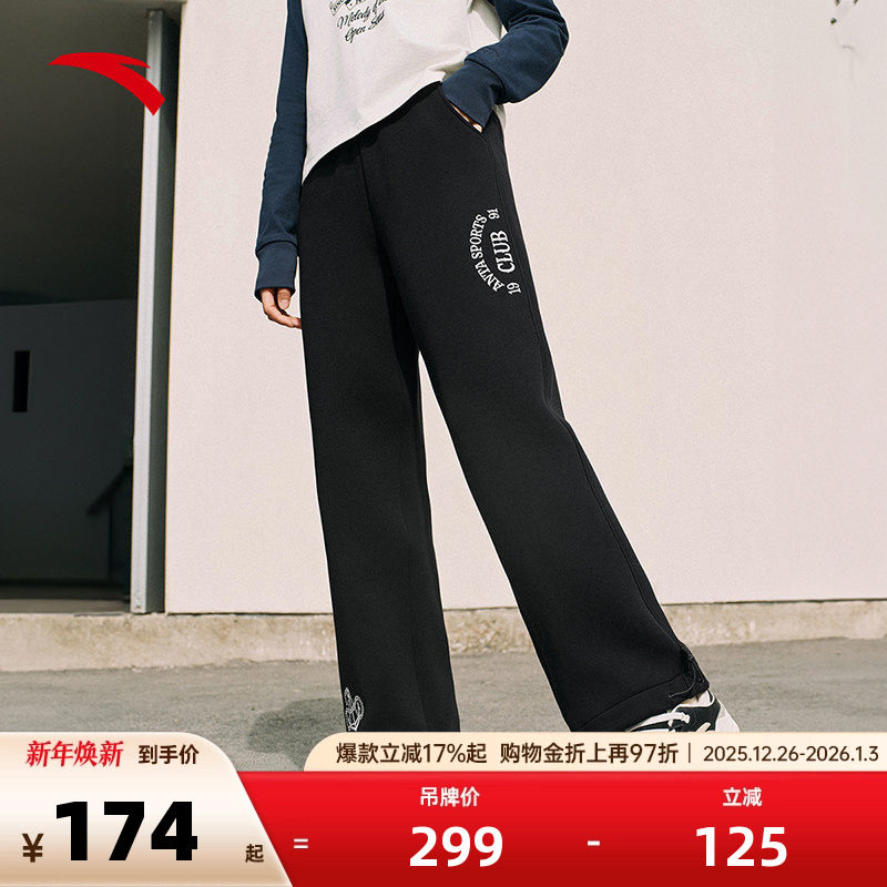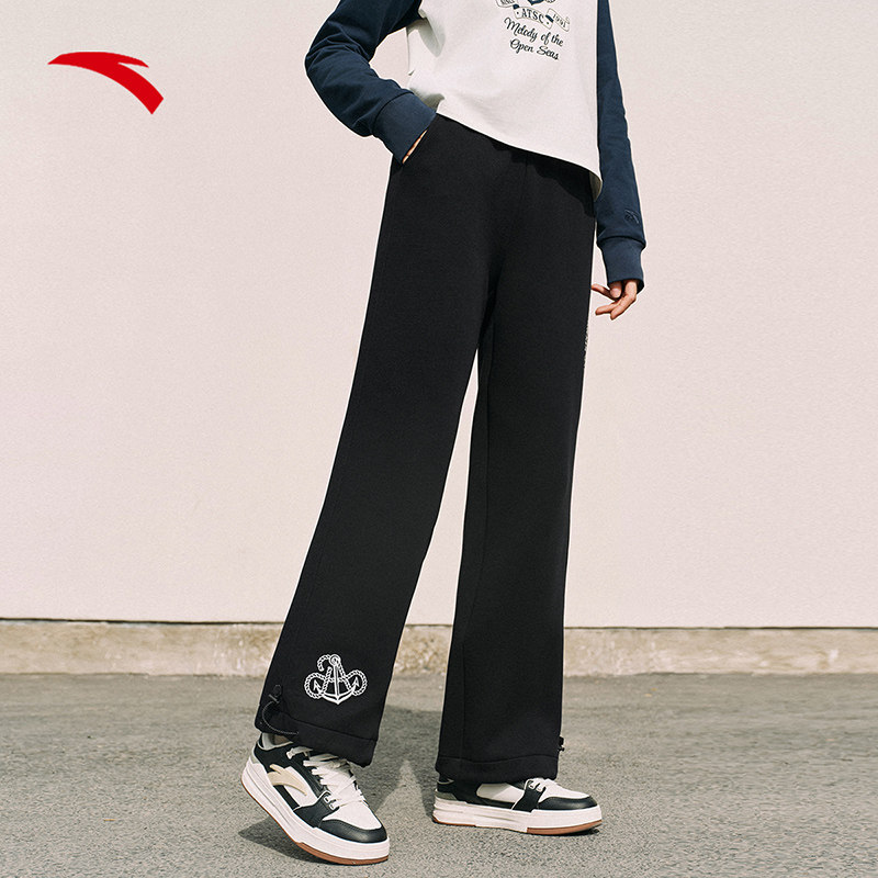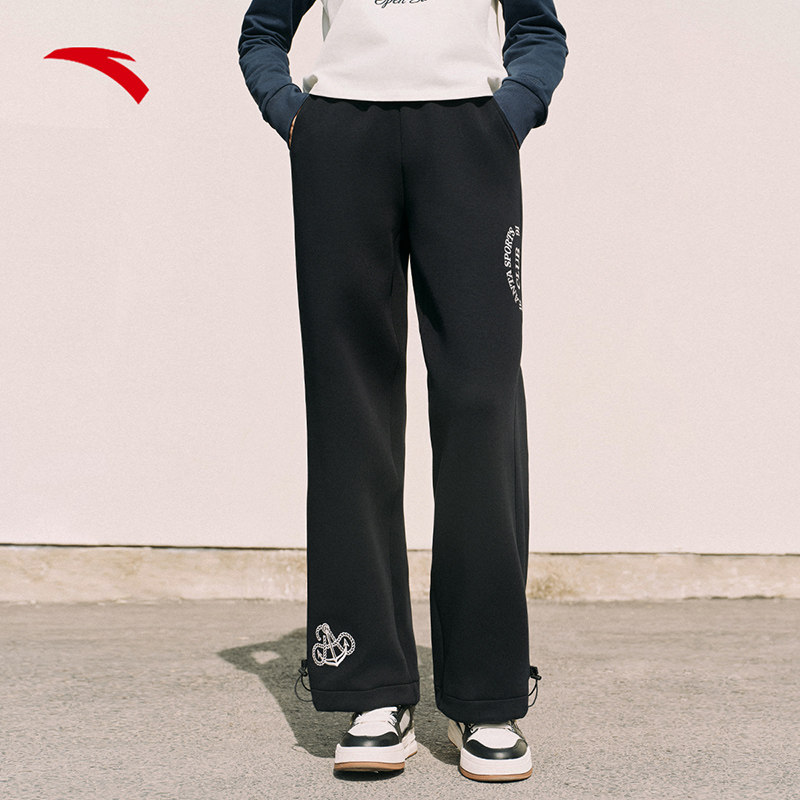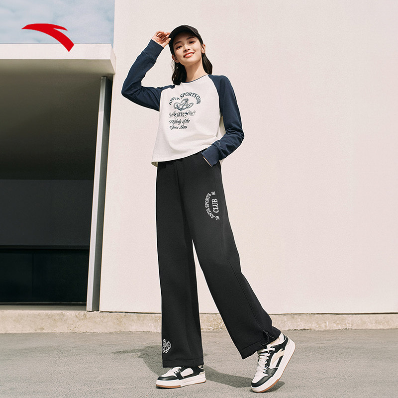 安踏美式运动长裤女秋冬季百搭抽绳束脚裤直筒休闲裤162518302