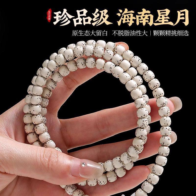 真海南星月菩提手串108颗原生态顺白脖挂佛珠大留白高密文玩念珠