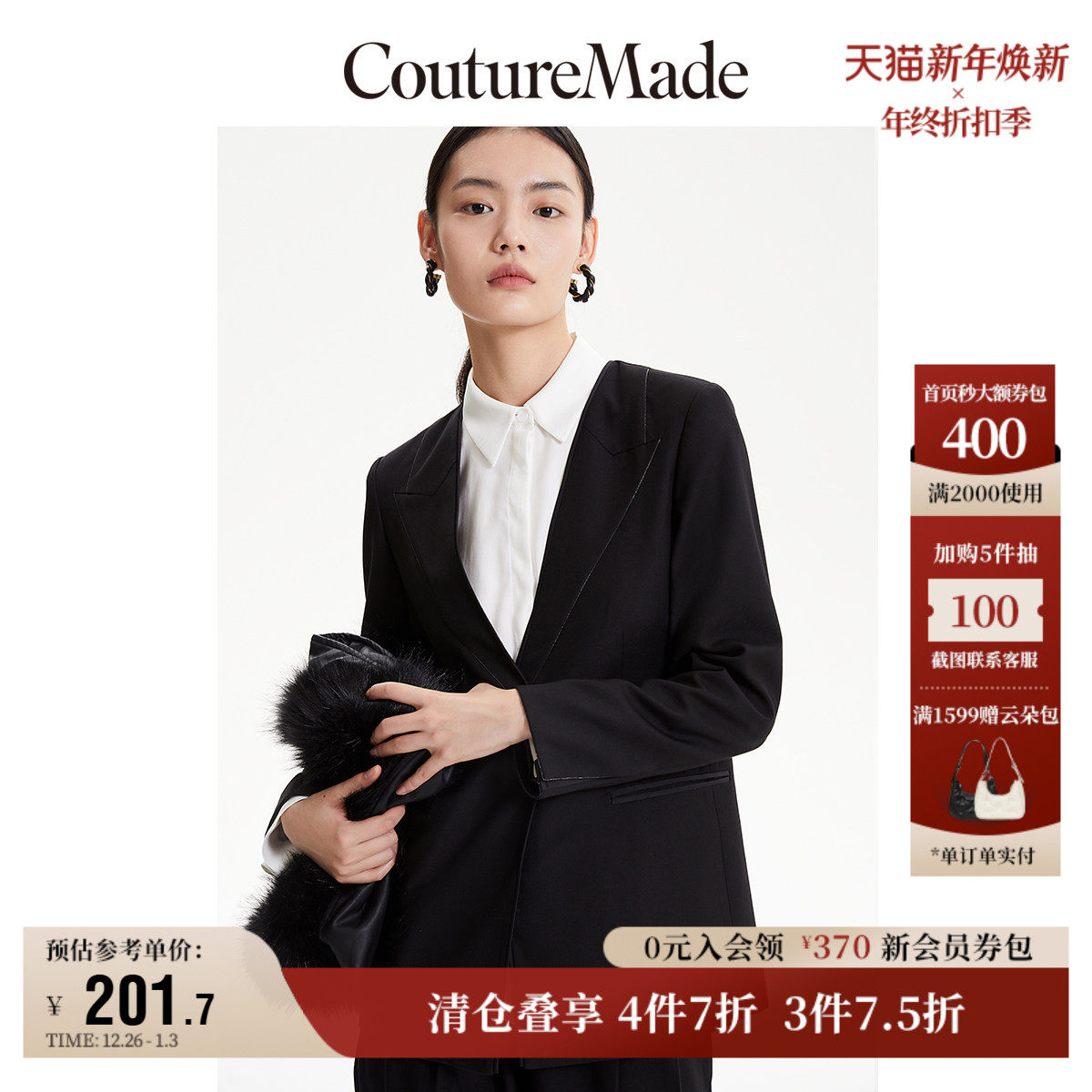 COCOBELLA高智感拼接人丝无领西装女早秋通勤休闲气质外套SI533B