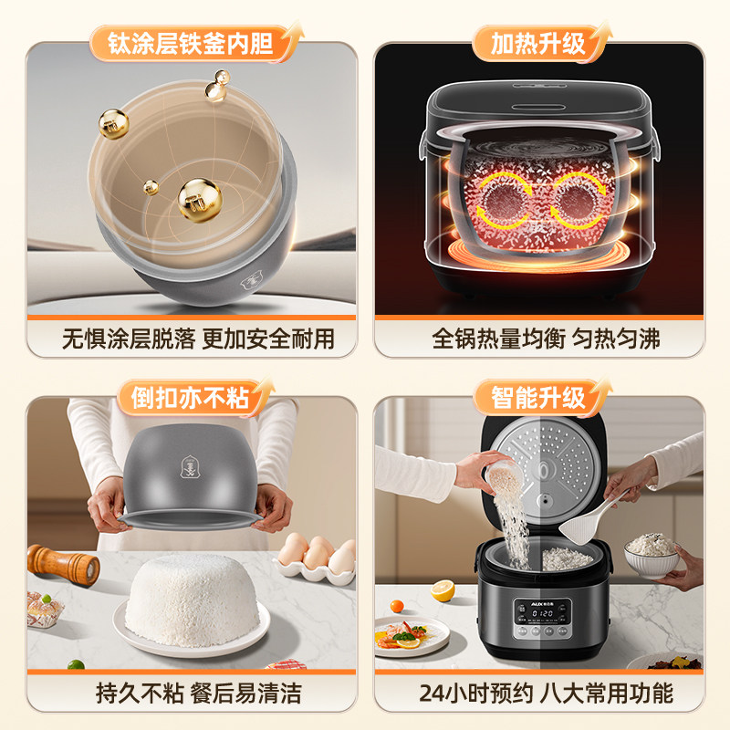 奥克斯电饭煲家用多功能釜胆煮饭锅2一8人电饭锅3L4L5L大容量低糖
