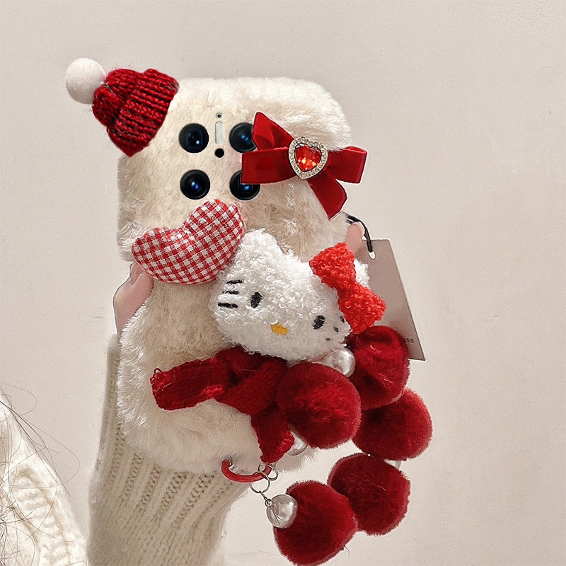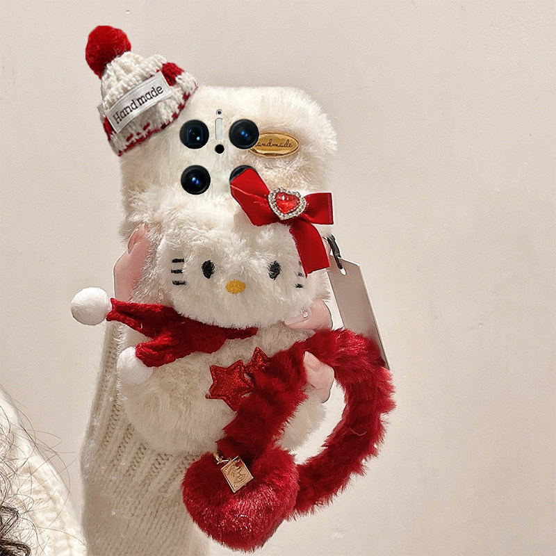 星星凯蒂猫适用华为mate70pro+手机壳meta60立体mata50e毛茸茸rs保时捷设计mete40e十m30秋冬季20x手环10毛绒