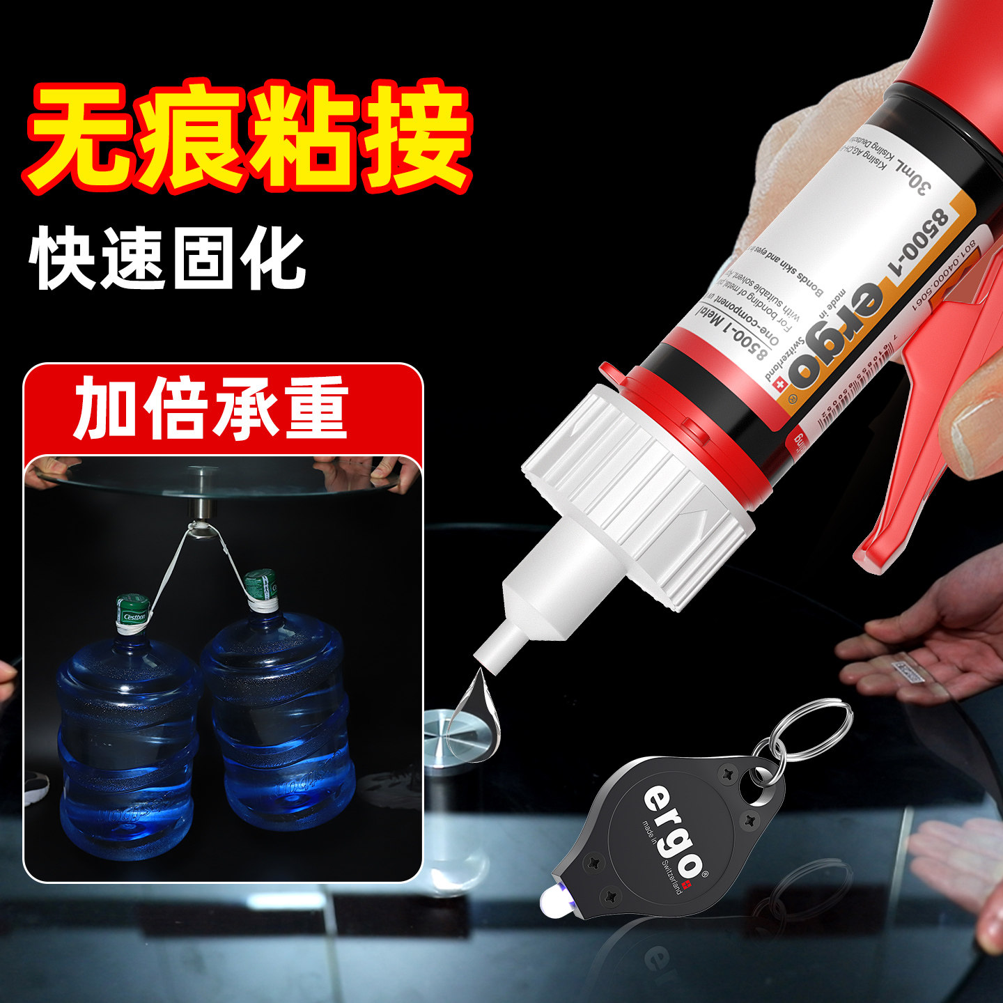 ergoUV无影胶 紫外线固化粘合剂粘金属水晶钢化玻璃茶几装饰吊灯奖杯透明亚克力专用快干强力无痕胶水高透明