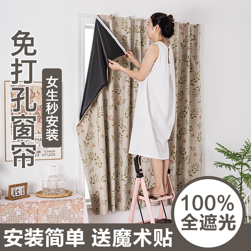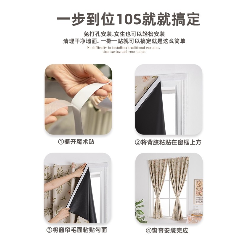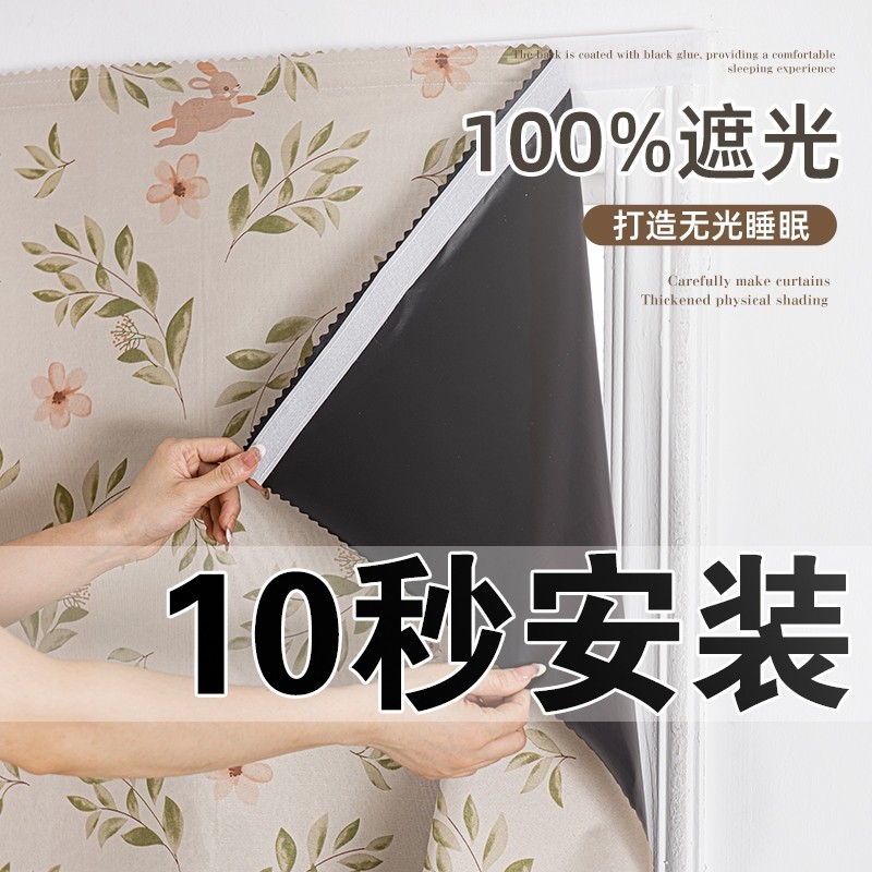 窗帘全遮光简易魔术贴免打孔安装自粘贴式2025新款防晒隔热小窗户