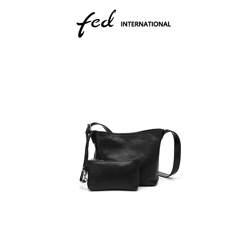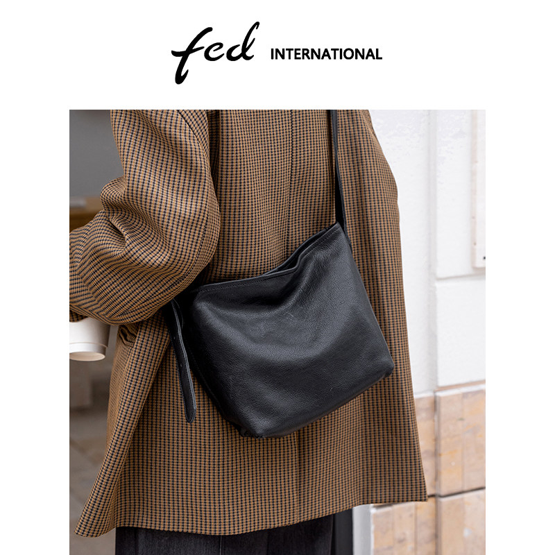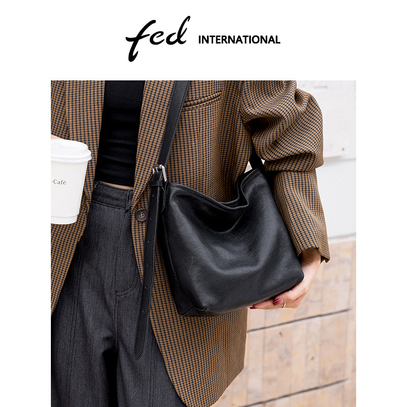 fed植鞣皮头层牛皮真皮女包水桶包HOBO包单肩斜挎女士包包BFA9060