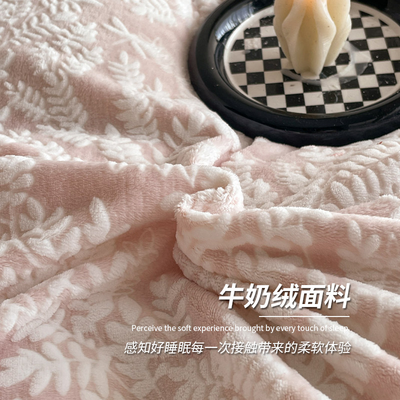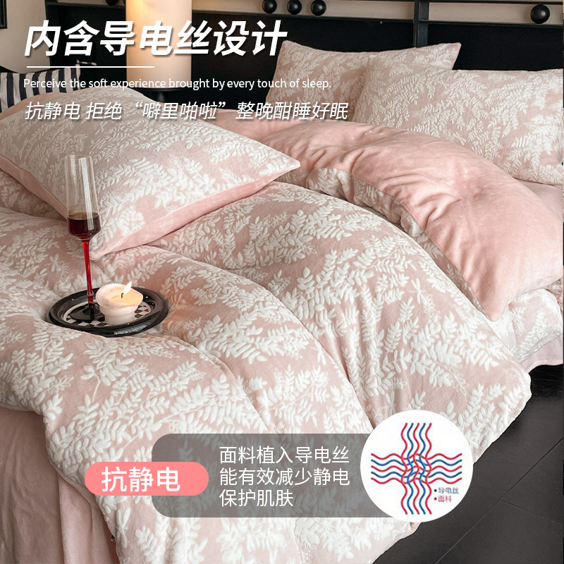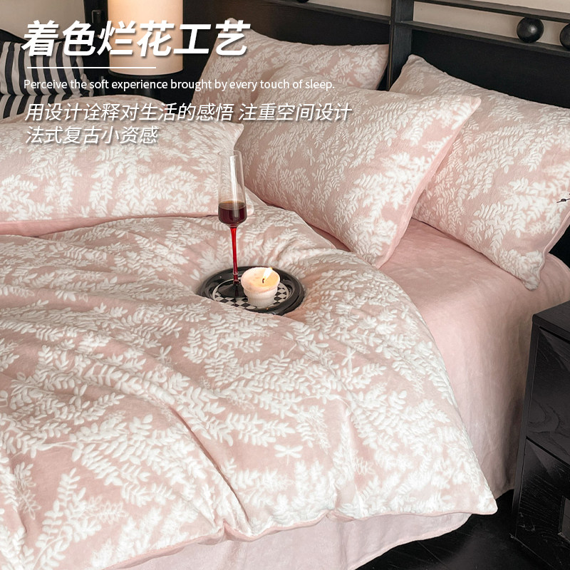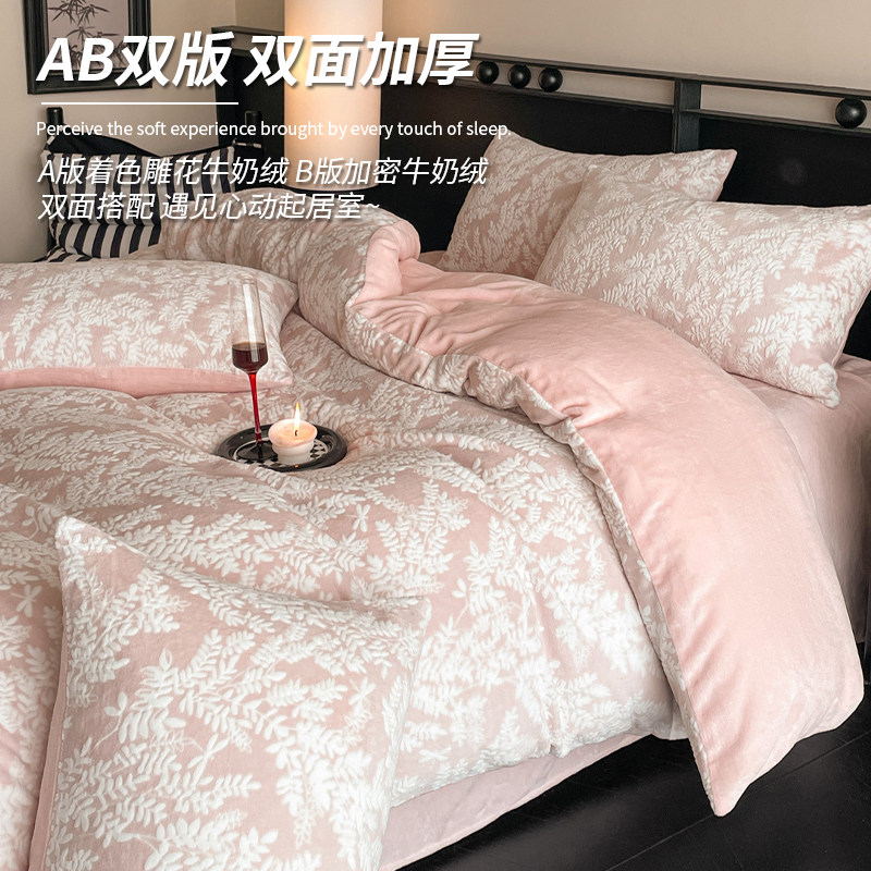 无印良品加厚牛奶绒雕花四件套冬季双面绒被套珊瑚绒床单床上用品