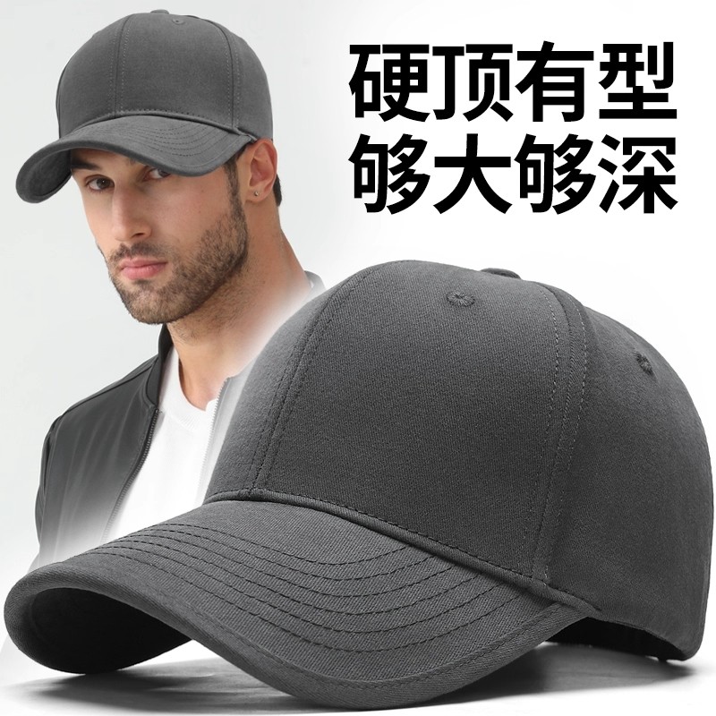 帽檐硬顶鸭舌帽帽子棒球帽大头围加深男宽檐磨毛卡其色显脸小黑色