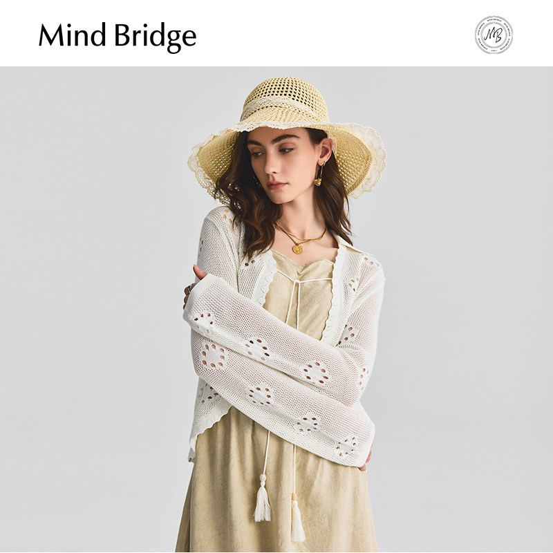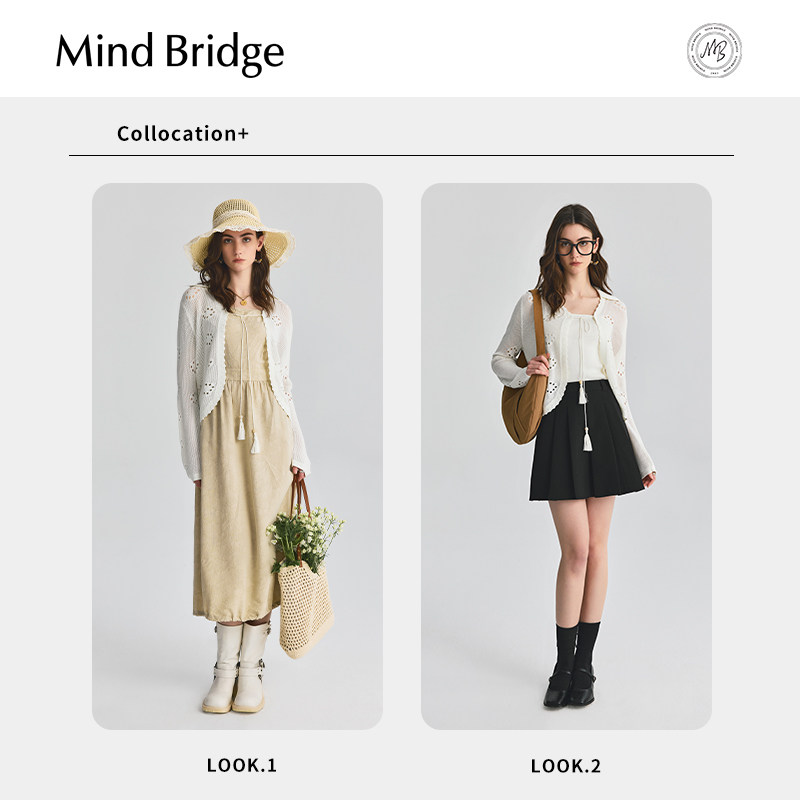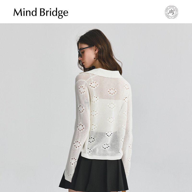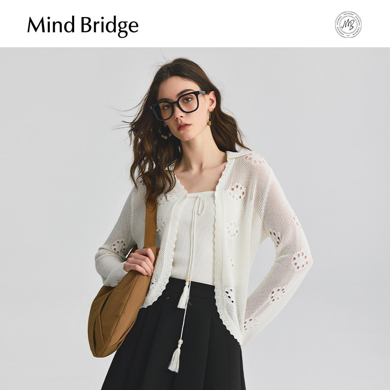 MindBridge2025年秋新款韩系镂空开衫女士翻领系带针织设计感外搭