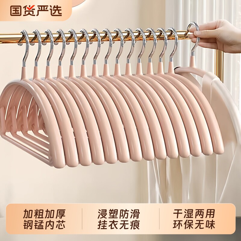 50个衣架家用挂衣防滑无痕防肩角护衣晾衣架晒衣撑子加长浸塑承重