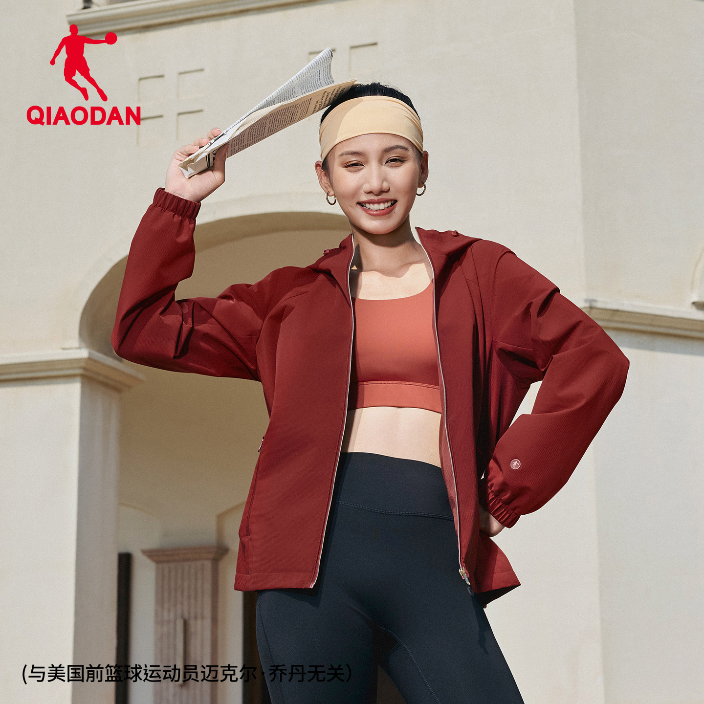 乔丹连帽梭织风衣女生2025冬季新款单层防风休闲运动户外登山外套