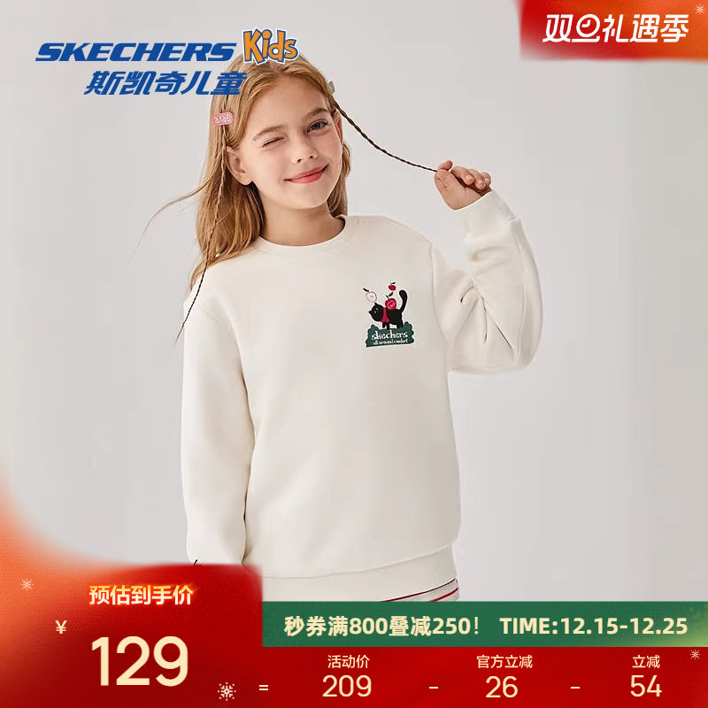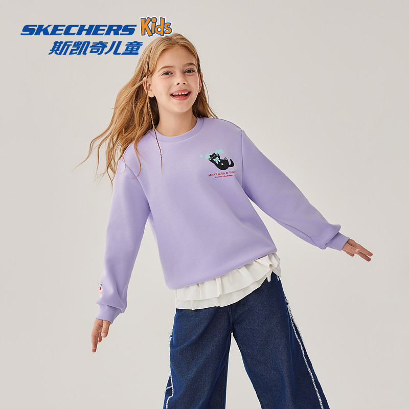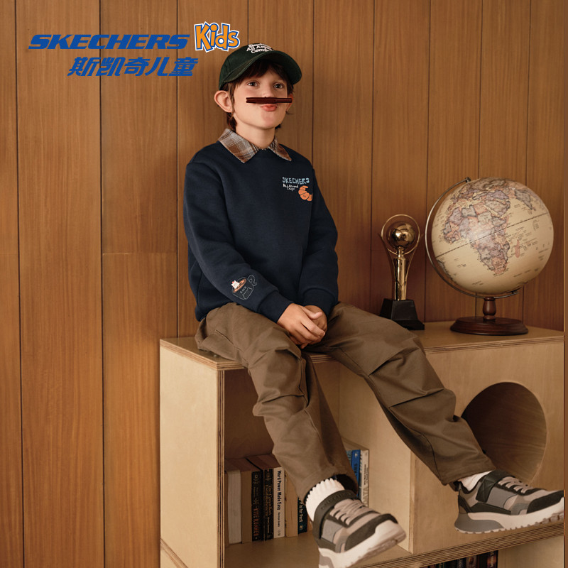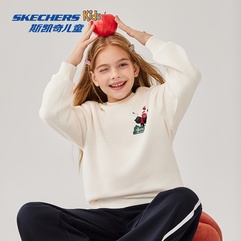 斯凯奇童装2025冬新款亲子男女同款简约舒适柔软时尚百搭套头卫衣