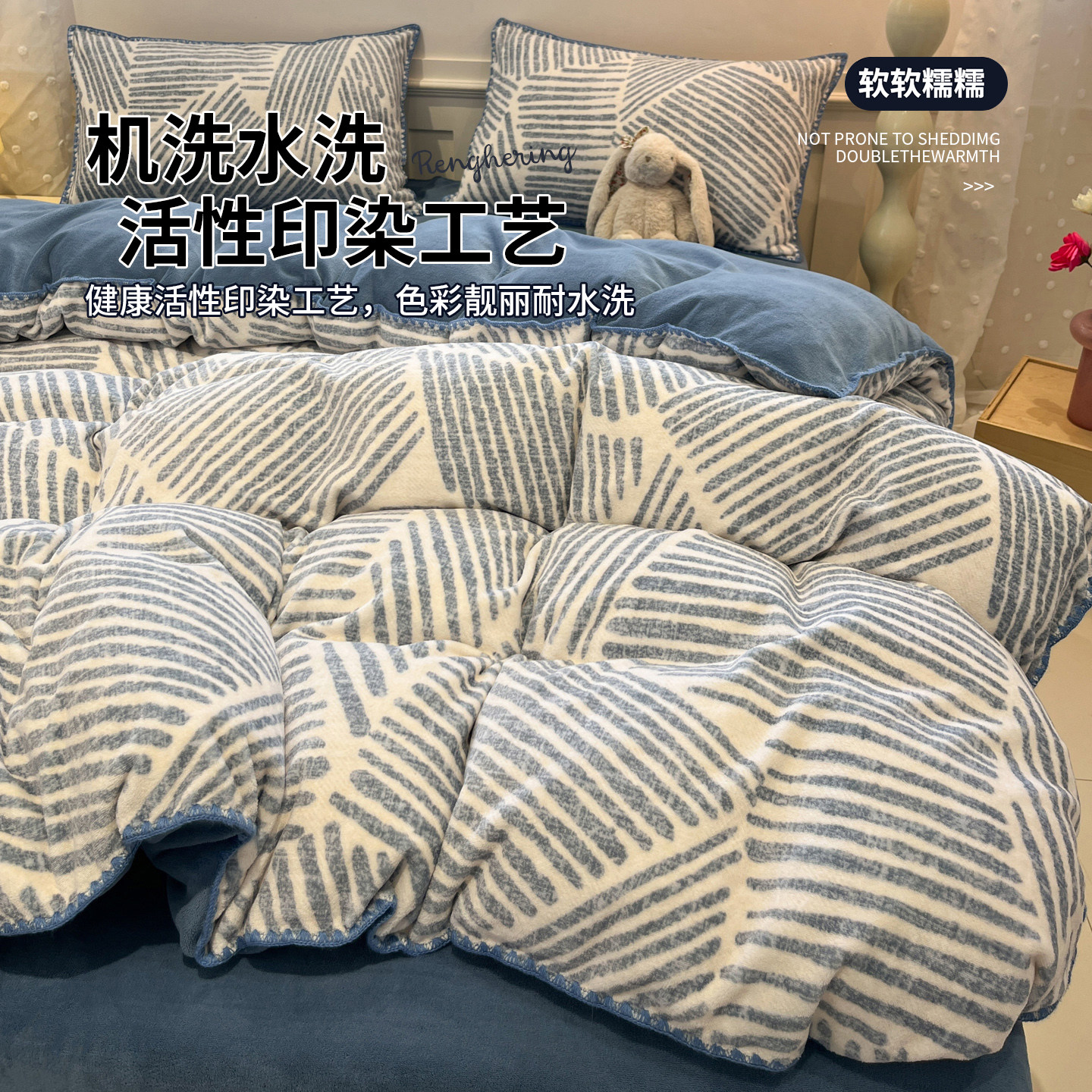 秋冬季加厚四件套牛奶绒被套床单双面加绒被罩床笠学生宿舍三件套