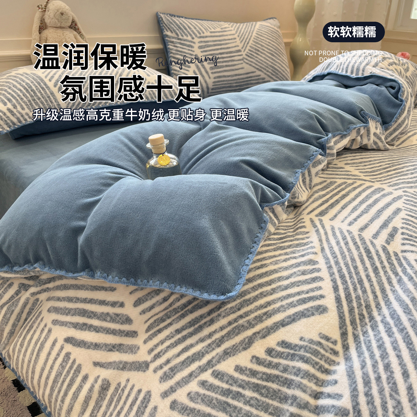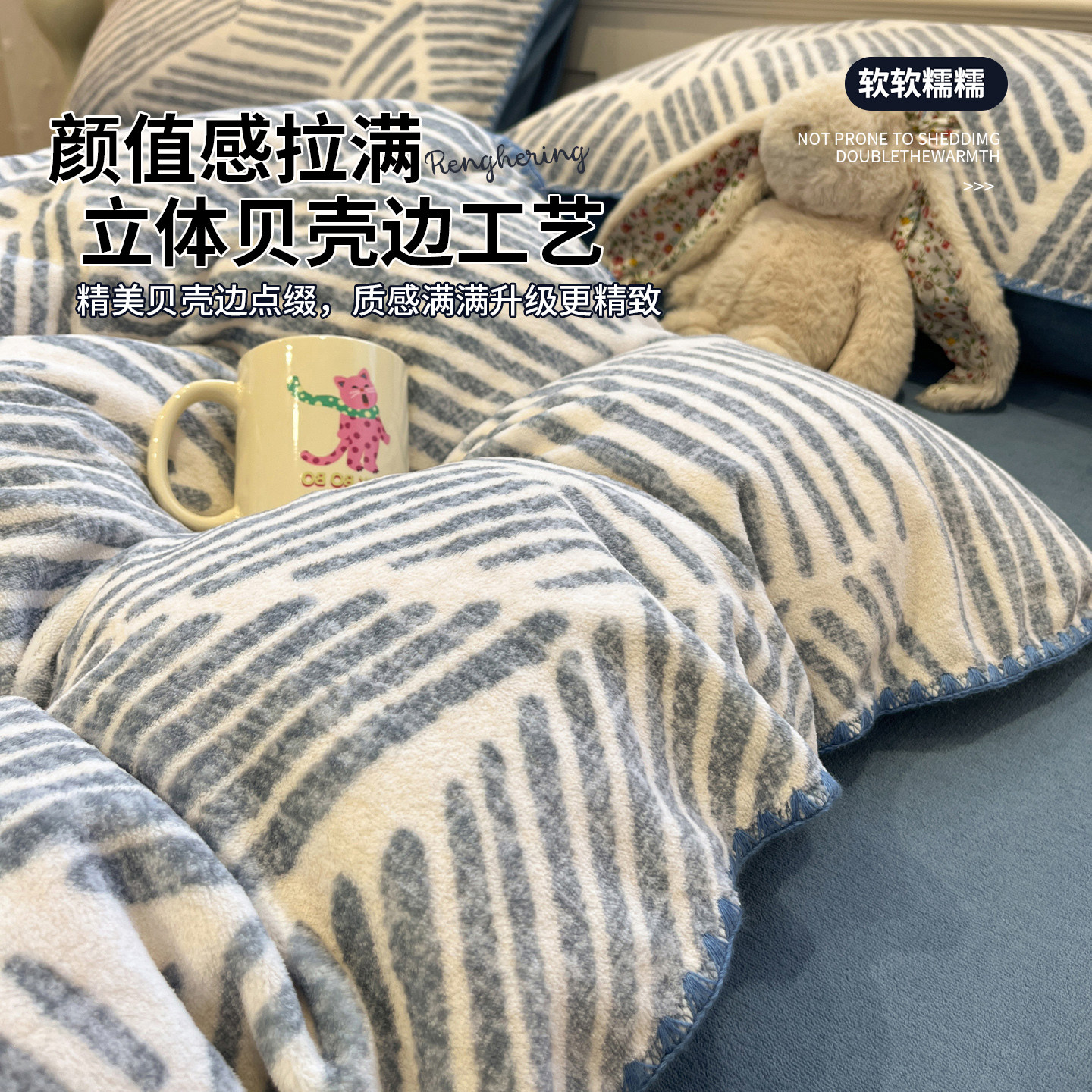 无印良品牛奶绒床上四件套2025新款秋冬季加厚床单被套三件套床品