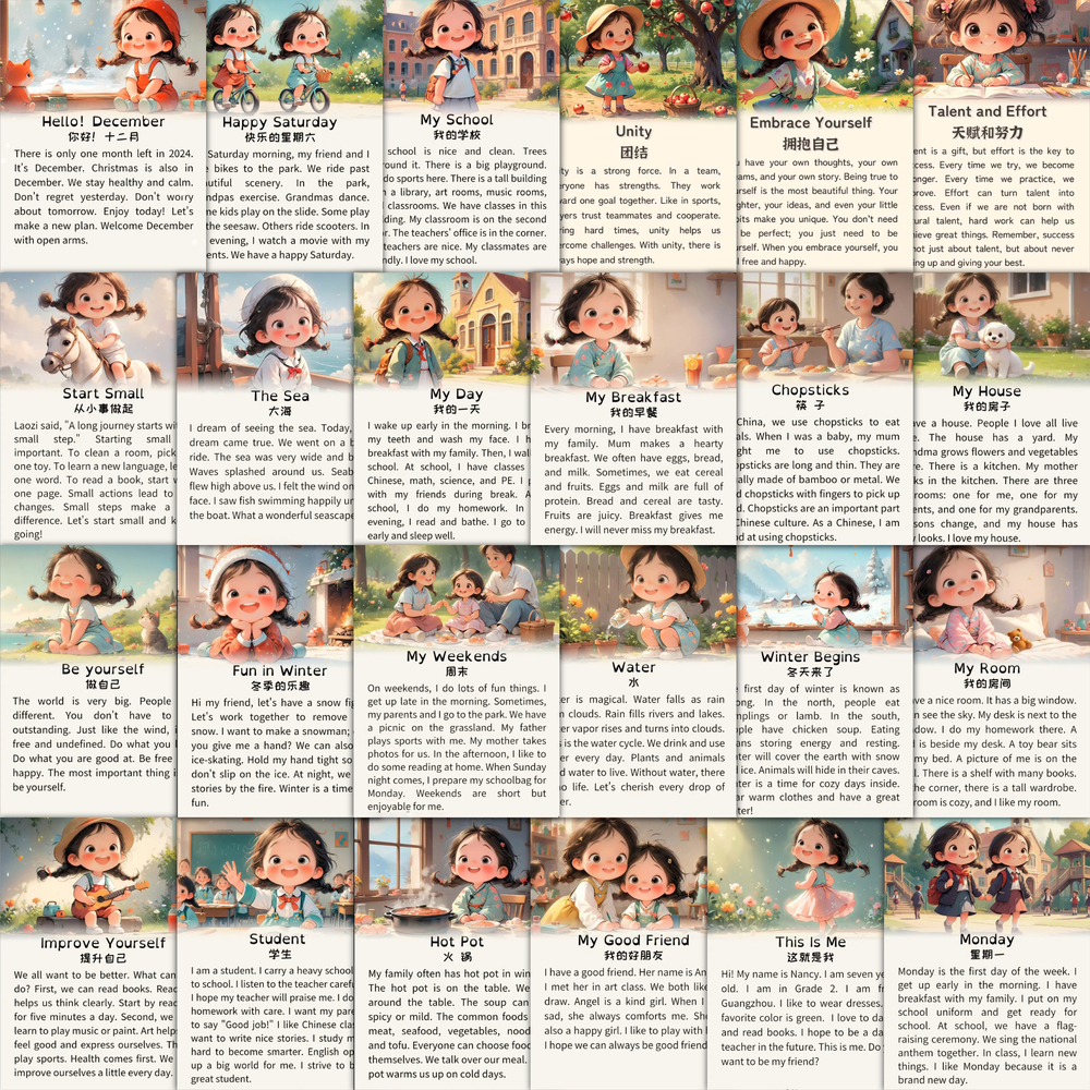 63张英语短文贴纸创意少儿英语启蒙学习装饰手机壳笔记本电脑diy