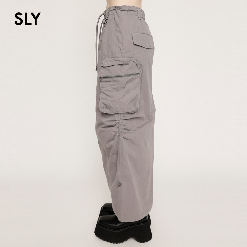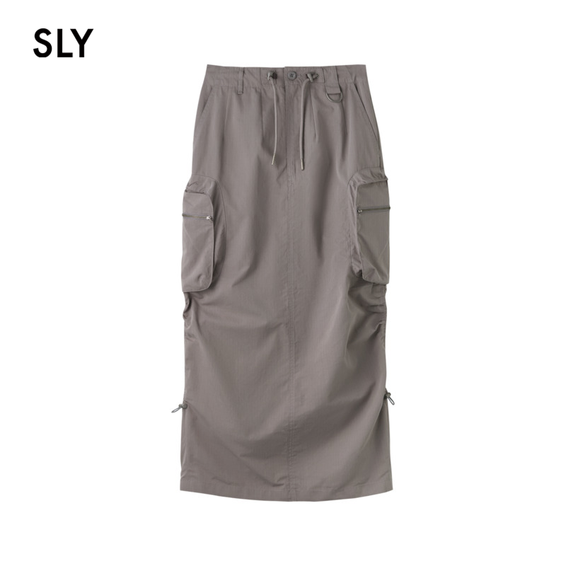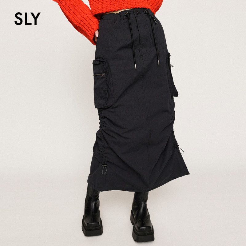 SLY 2024夏季新品低腰工装风抽绳抽褶扣环半身裙女038GAL31-6050