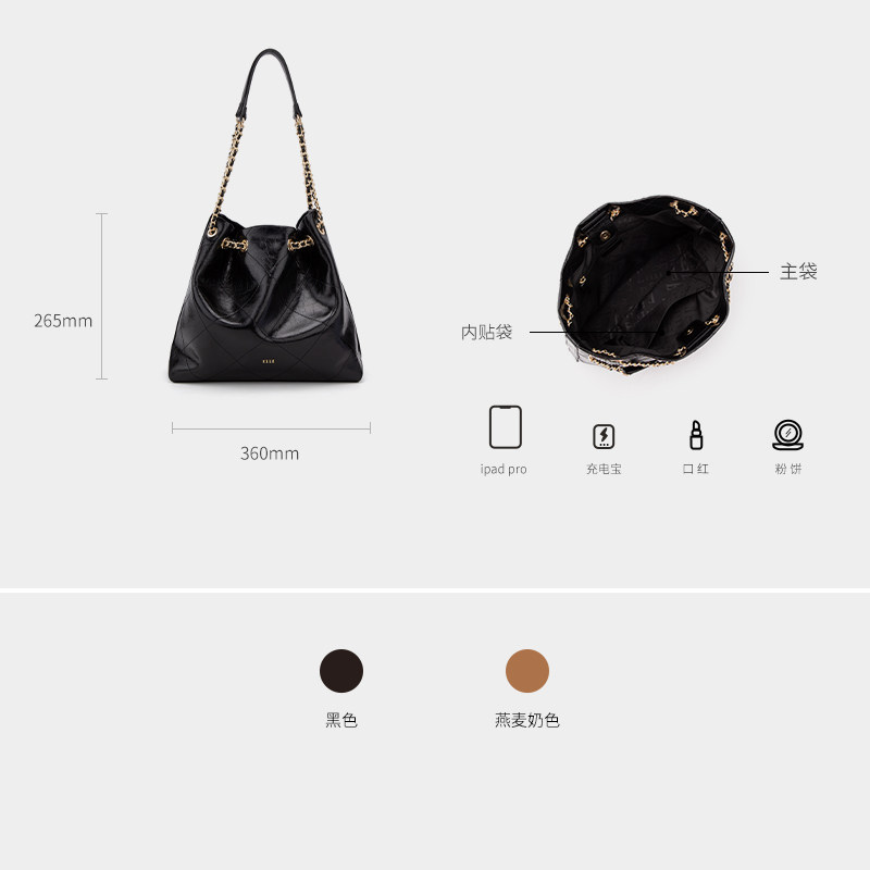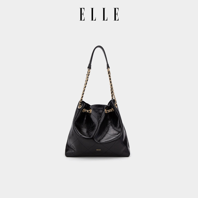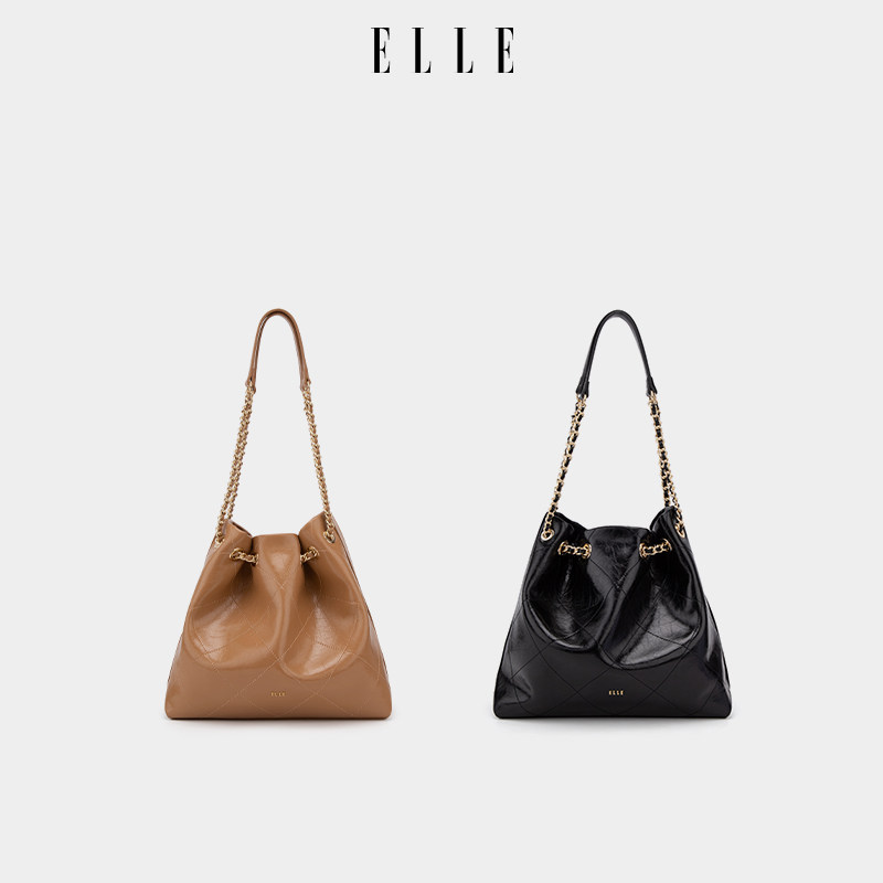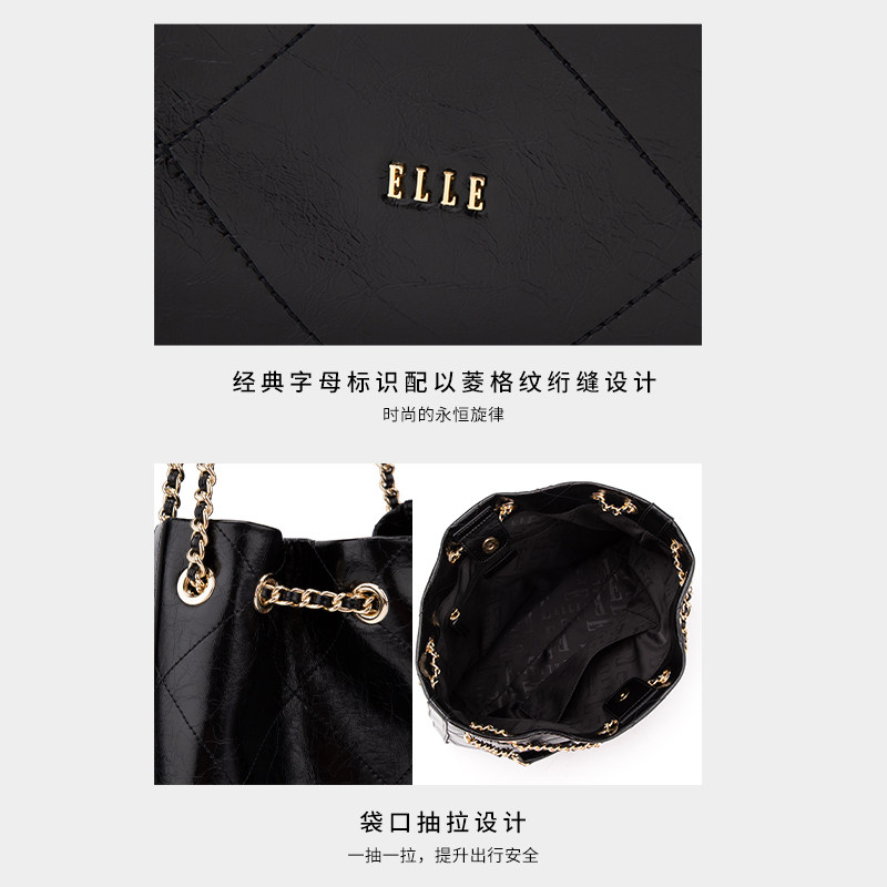 ELLE女包2025新款包包链条菱格水桶包购物简约手提包大容量单肩包