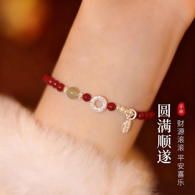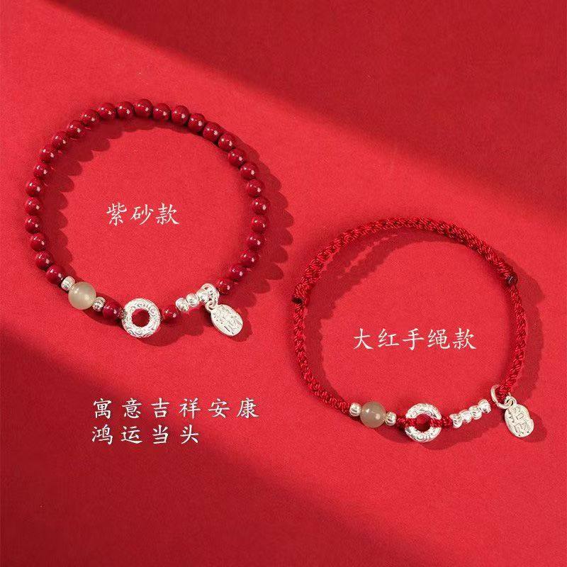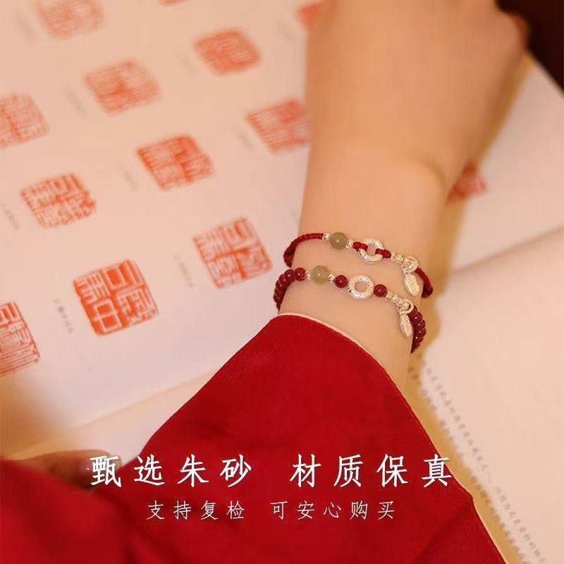 纯银平安扣朱砂红手绳银饰女马本命年新款手链编织绳轻奢小众精致