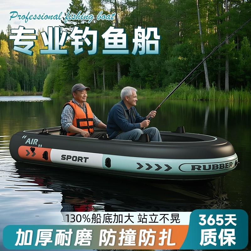 皮划艇充气船加厚橡皮艇户外钓鱼专用船水上小渔船单人多人气垫船