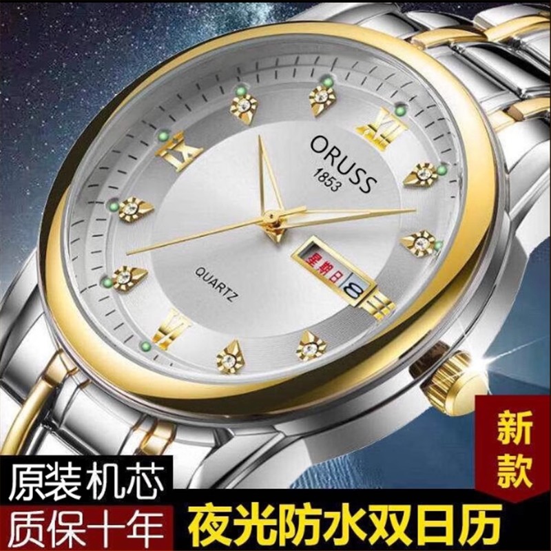 奥瑞时手表男士户外表钢带石英表商务防水夜光时尚间金款男士手表