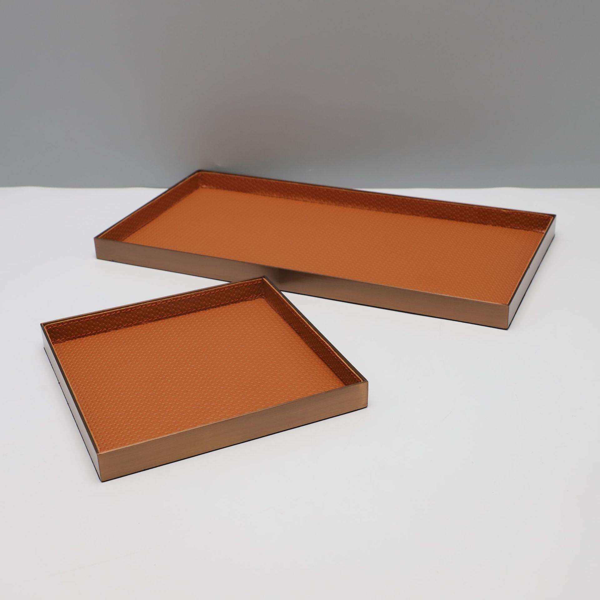 新中式金属皮革托盘创意家居艺术客厅样板间书房桌面软装饰品摆件