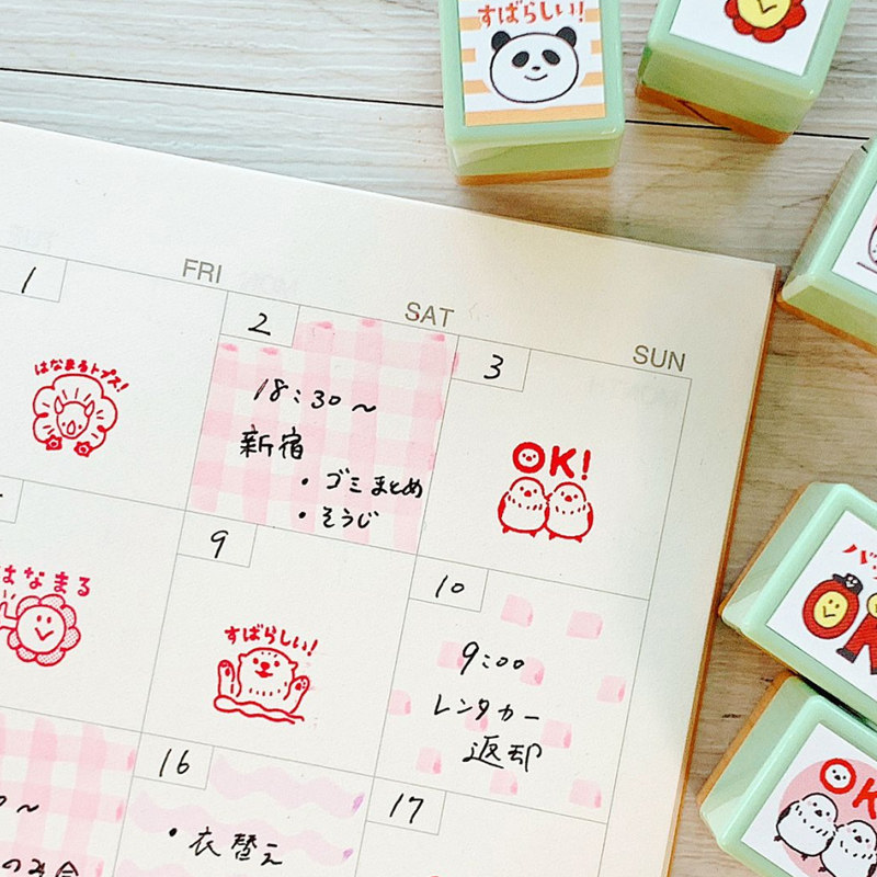 日本KODOMO NO KAO 儿童可爱印章卡通动物迷你浸透印章日程本打卡