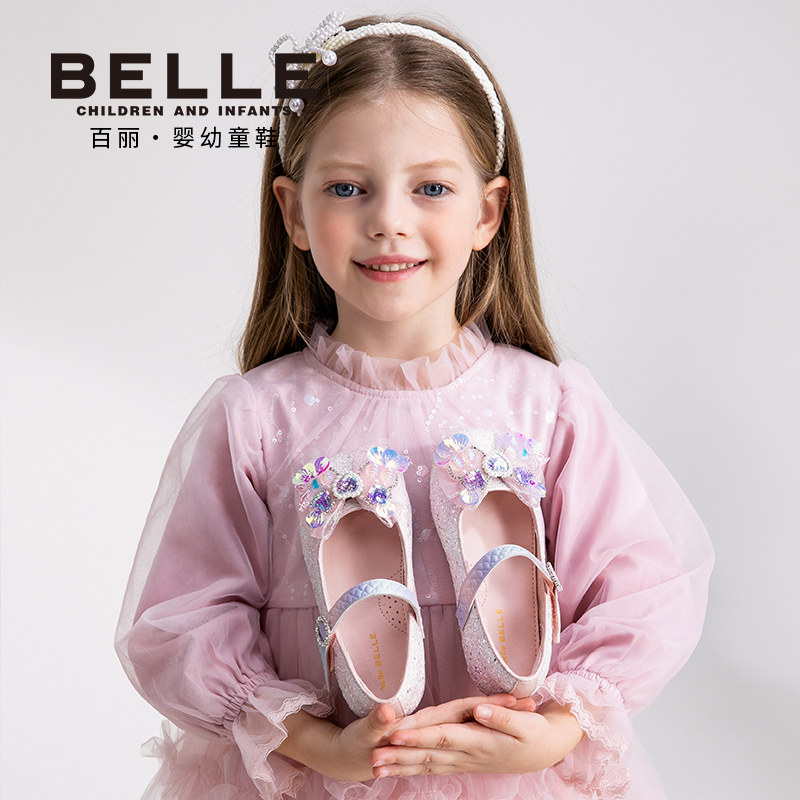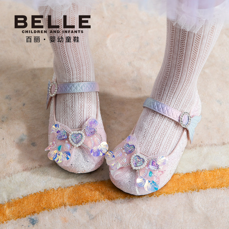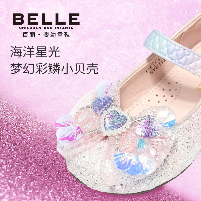 百丽童鞋26春季新款女童梦幻美人鱼海洋公主鞋闪钻皮鞋宝宝水晶鞋