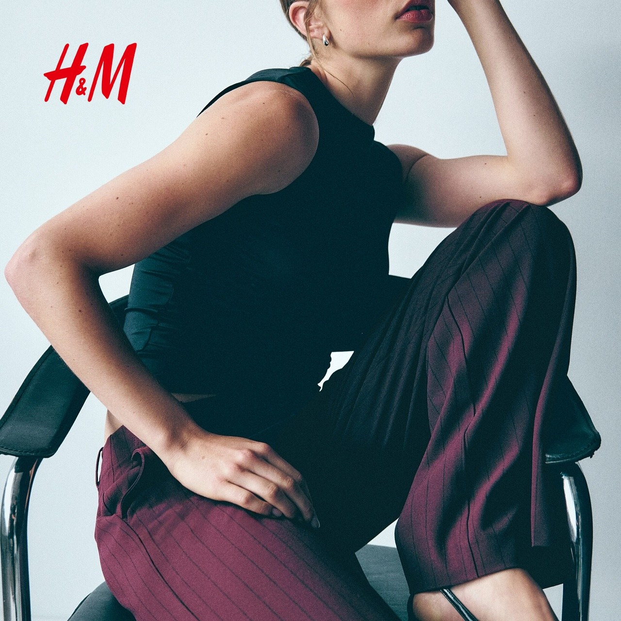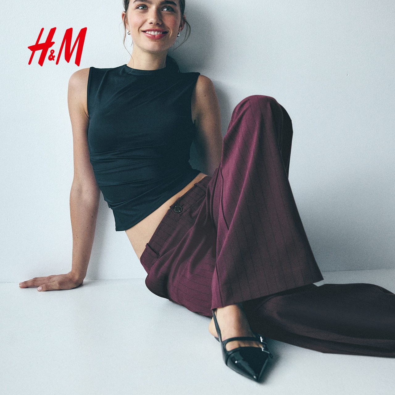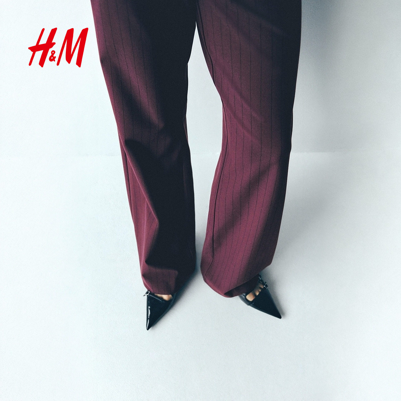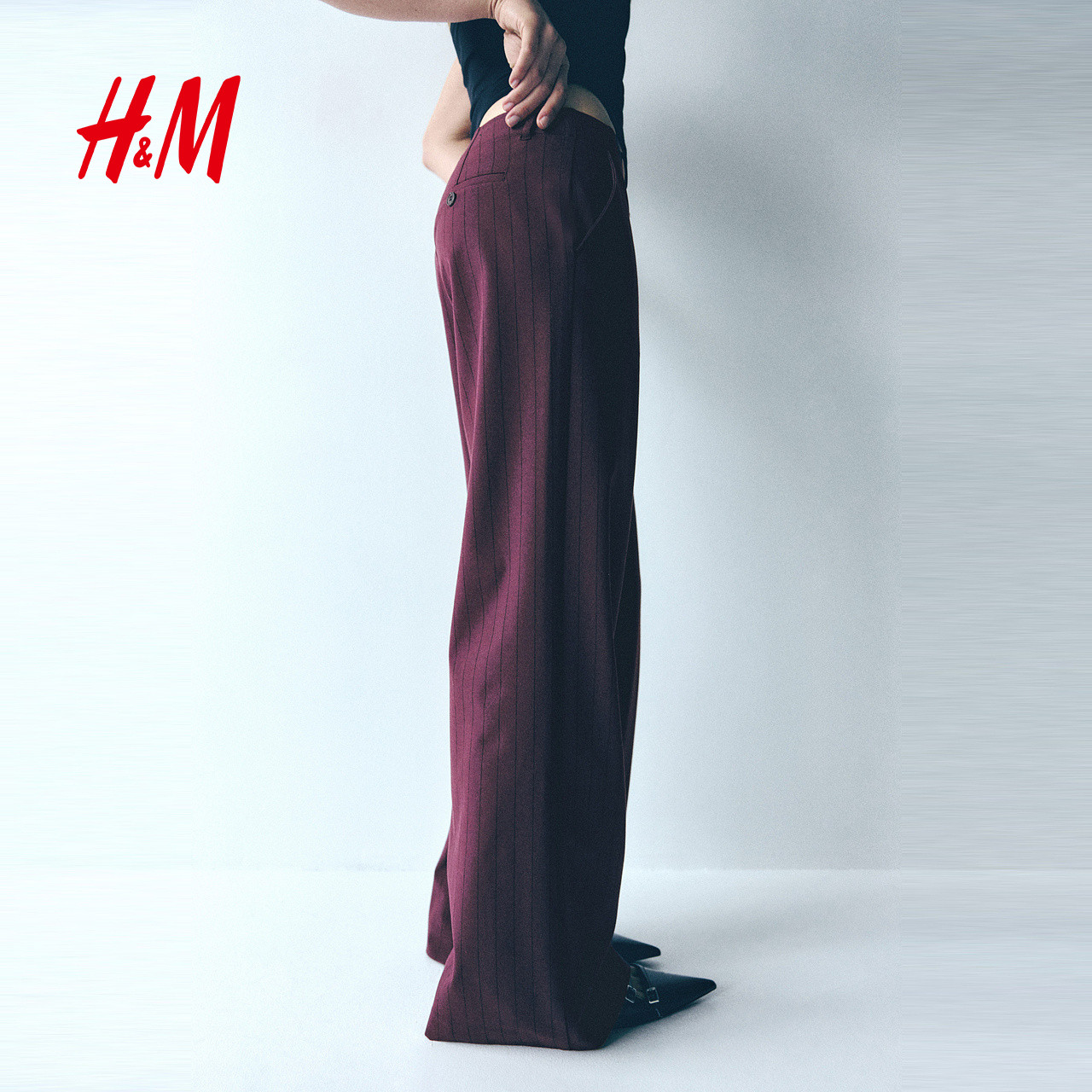 HM女装裤子2025年冬季新款时尚简约气质柔软潮流阔腿裤1300612