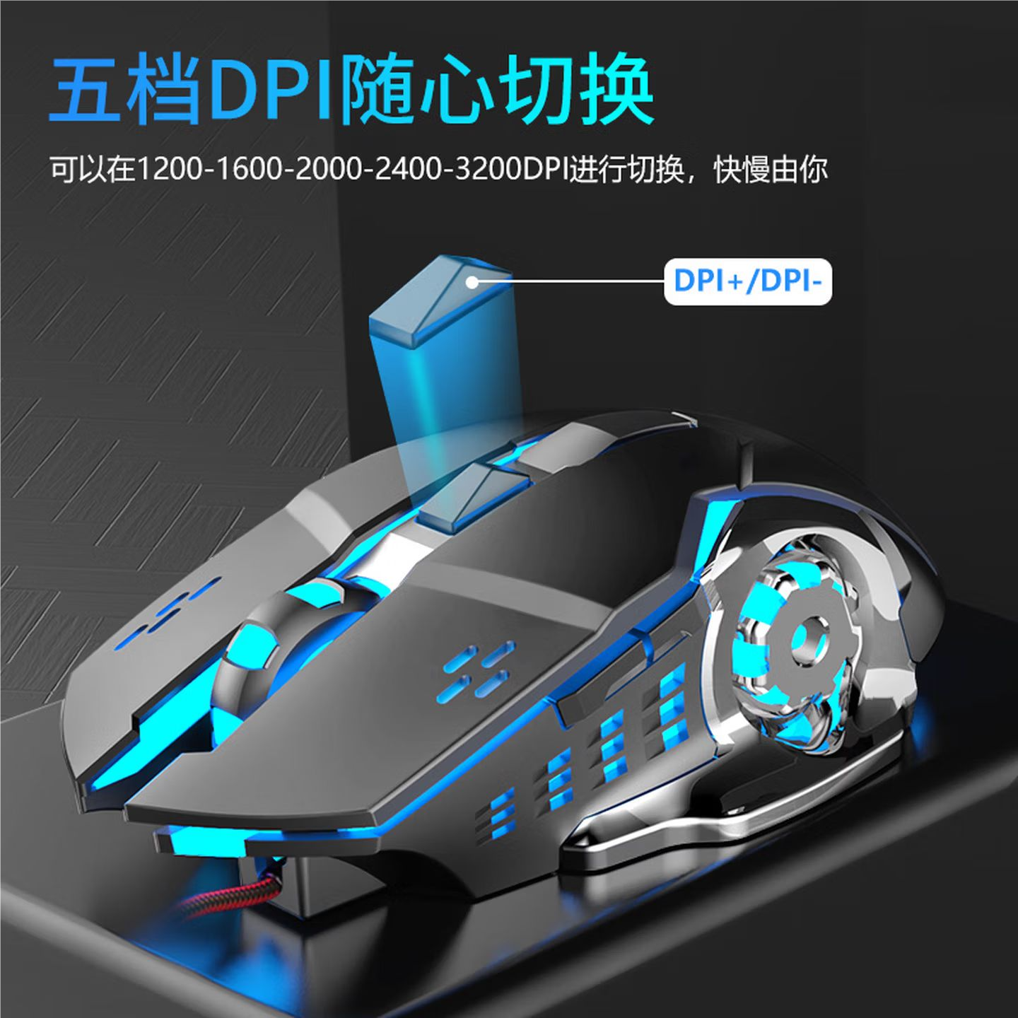 英菲克PW1有线鼠标静音游戏电竞机械宏办公usb台式笔记本电脑专用