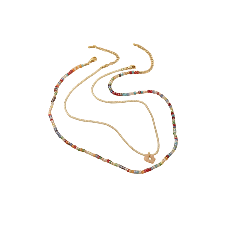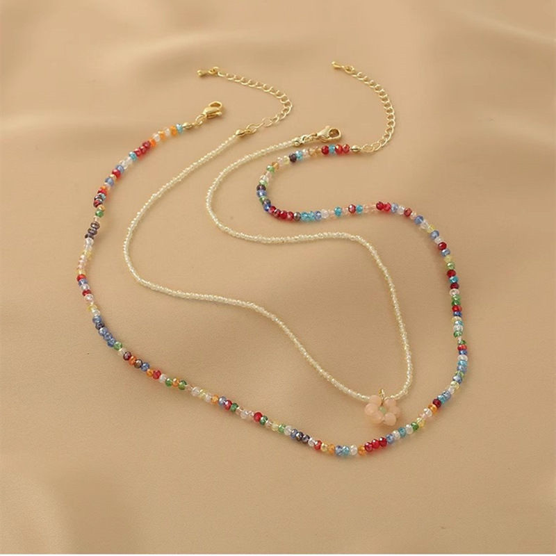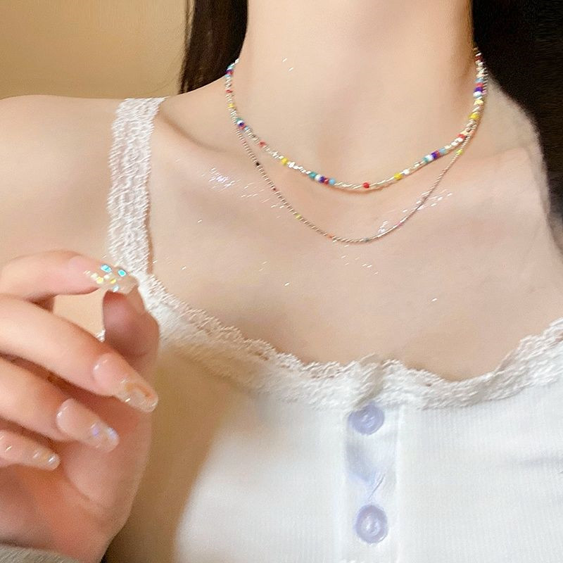 彩色双层串珠项链女款2024新款爆款颈链轻奢小众设计感锁骨链爱心