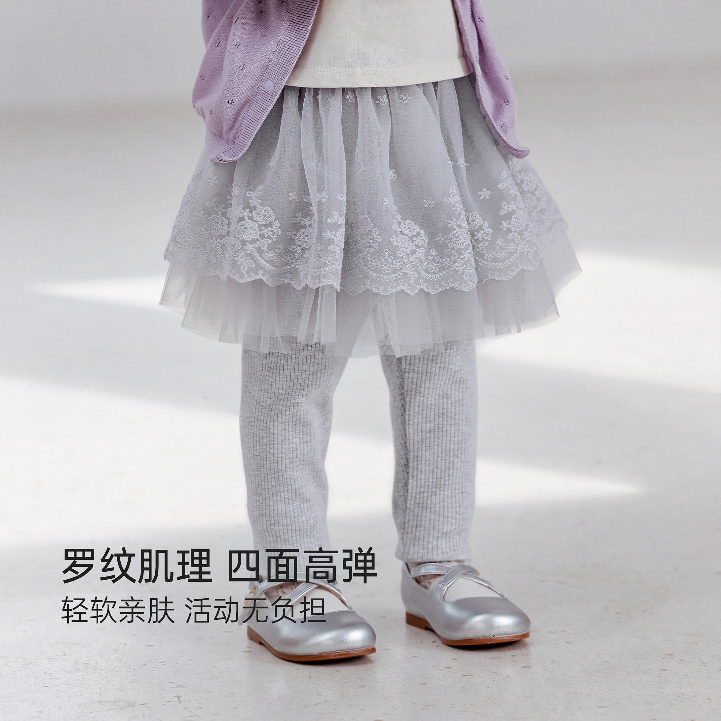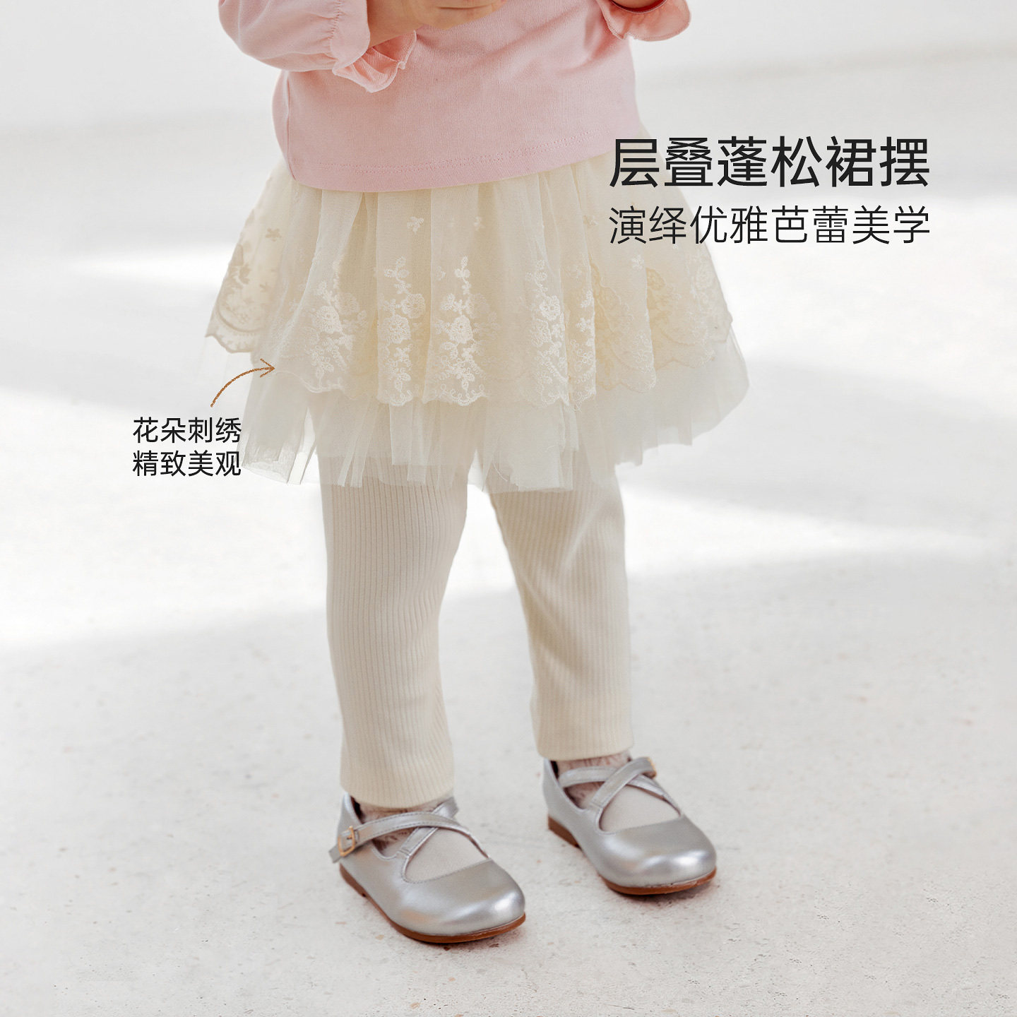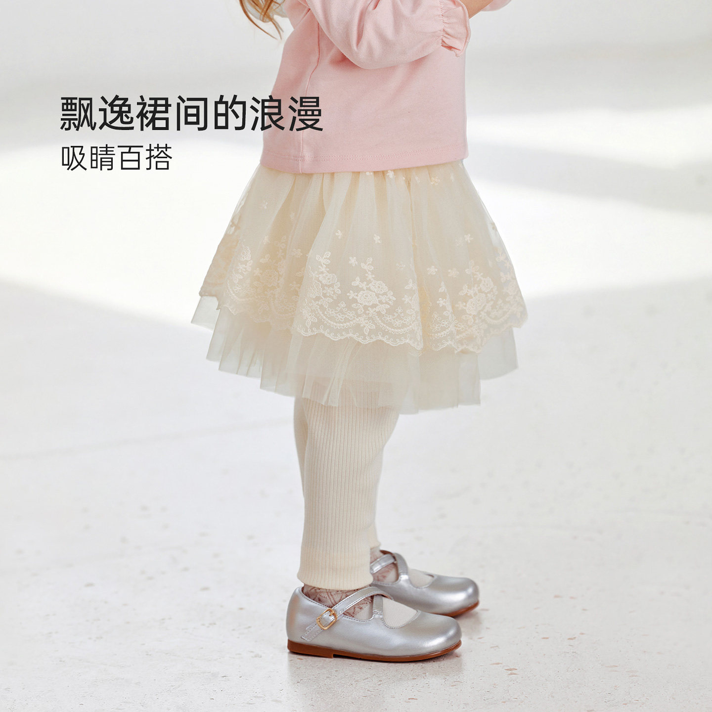 babylove女宝宝假两件纱裙春秋季百搭打底裙裤公主裙防走光半身裙