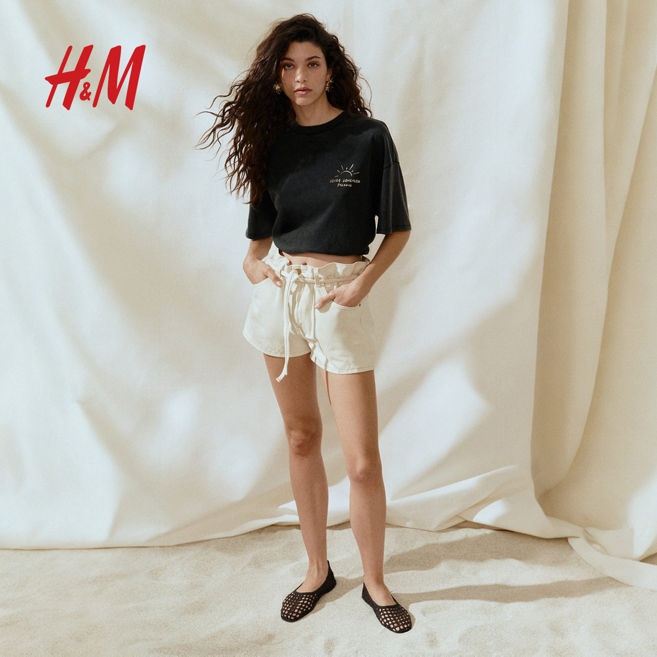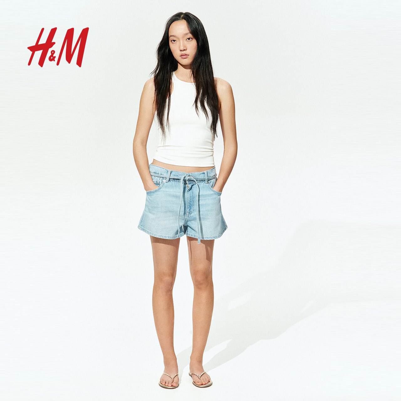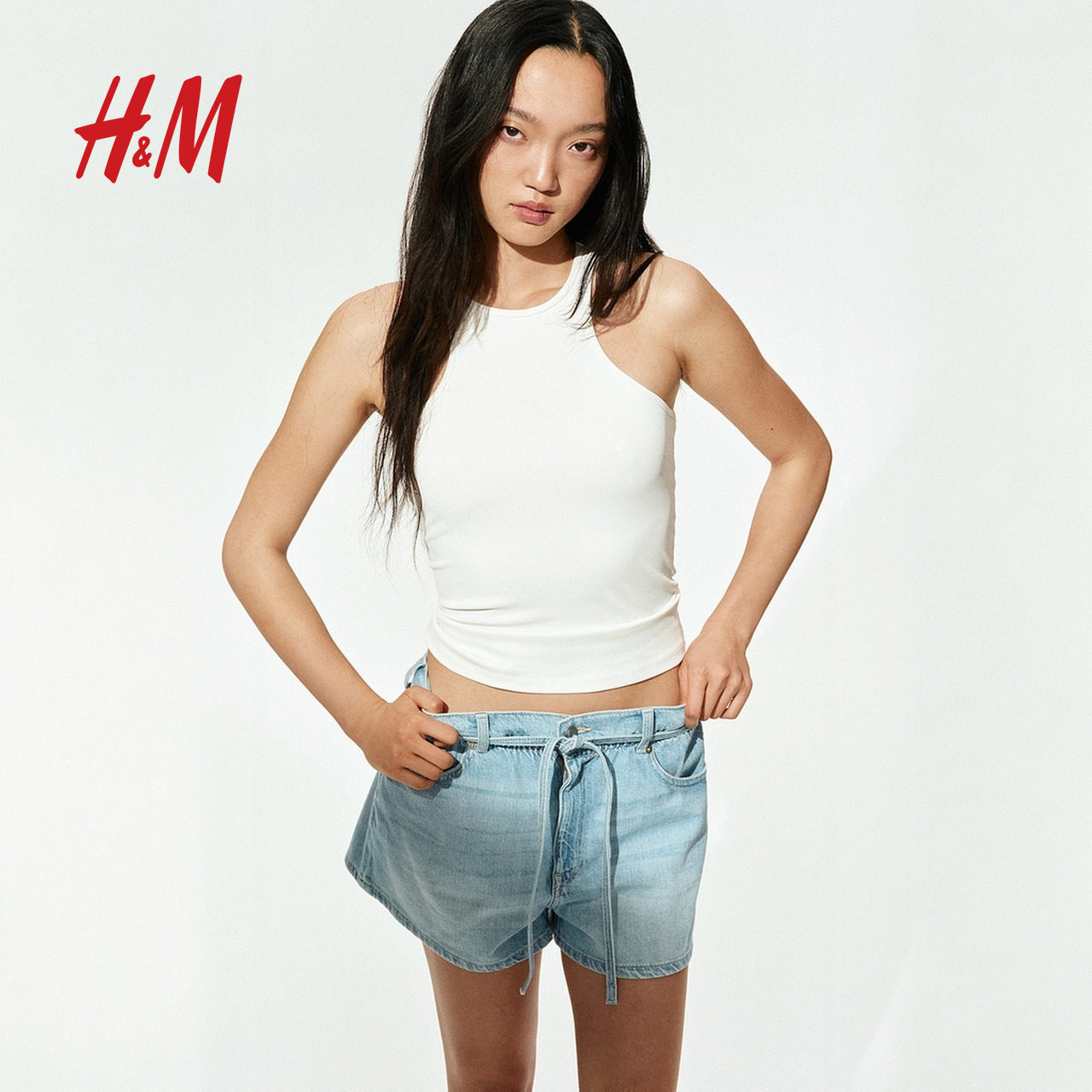 HM女装短裤春季纸袋高腰牛仔短裤1280438
