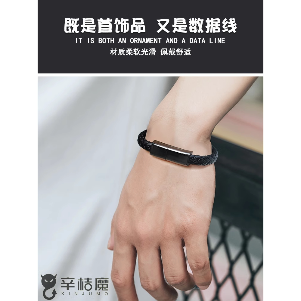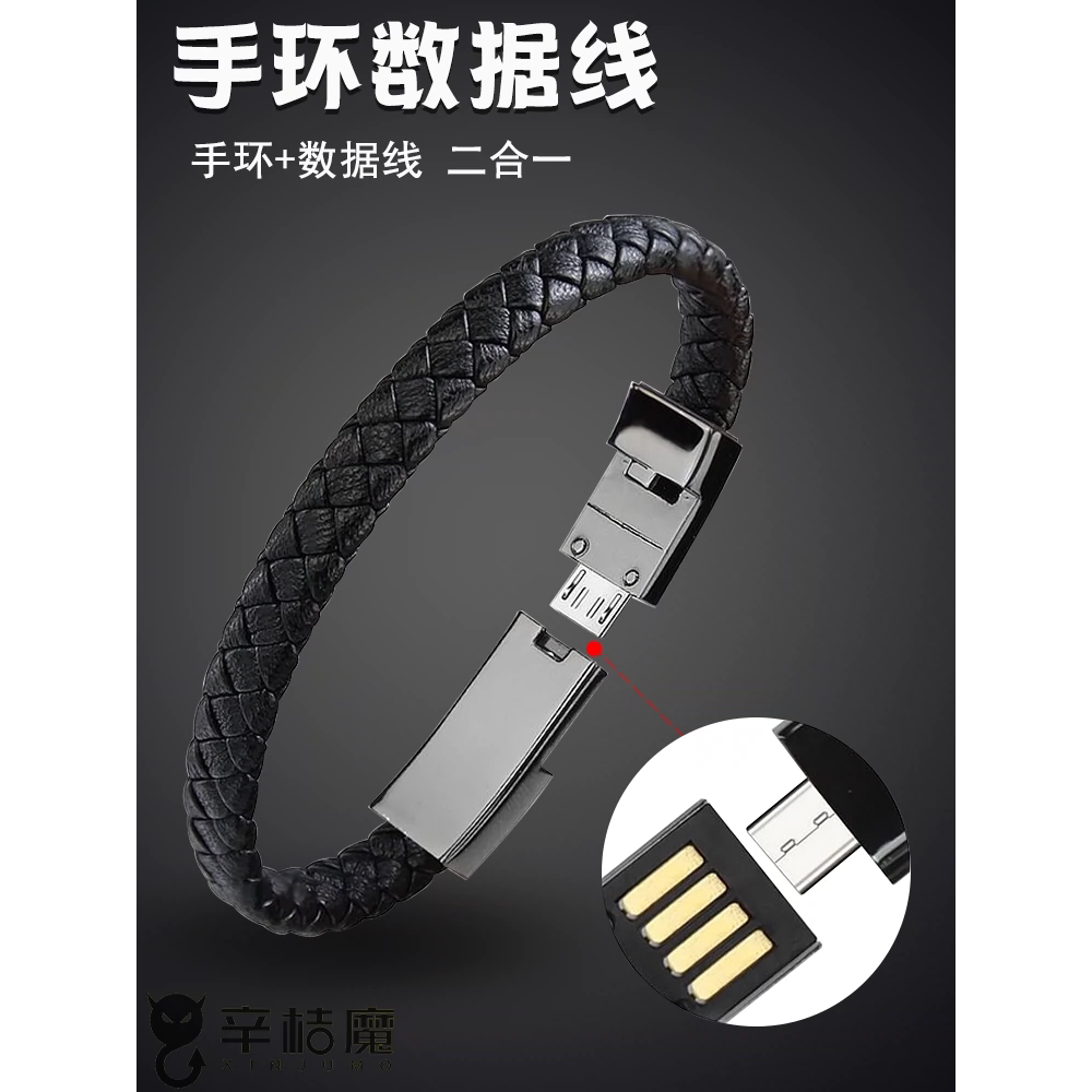 适用小米oppo华为vivo苹果iPhone14type-c转usb短便携充电线网红简约创意快充手链式手环手腕数据线安卓手机