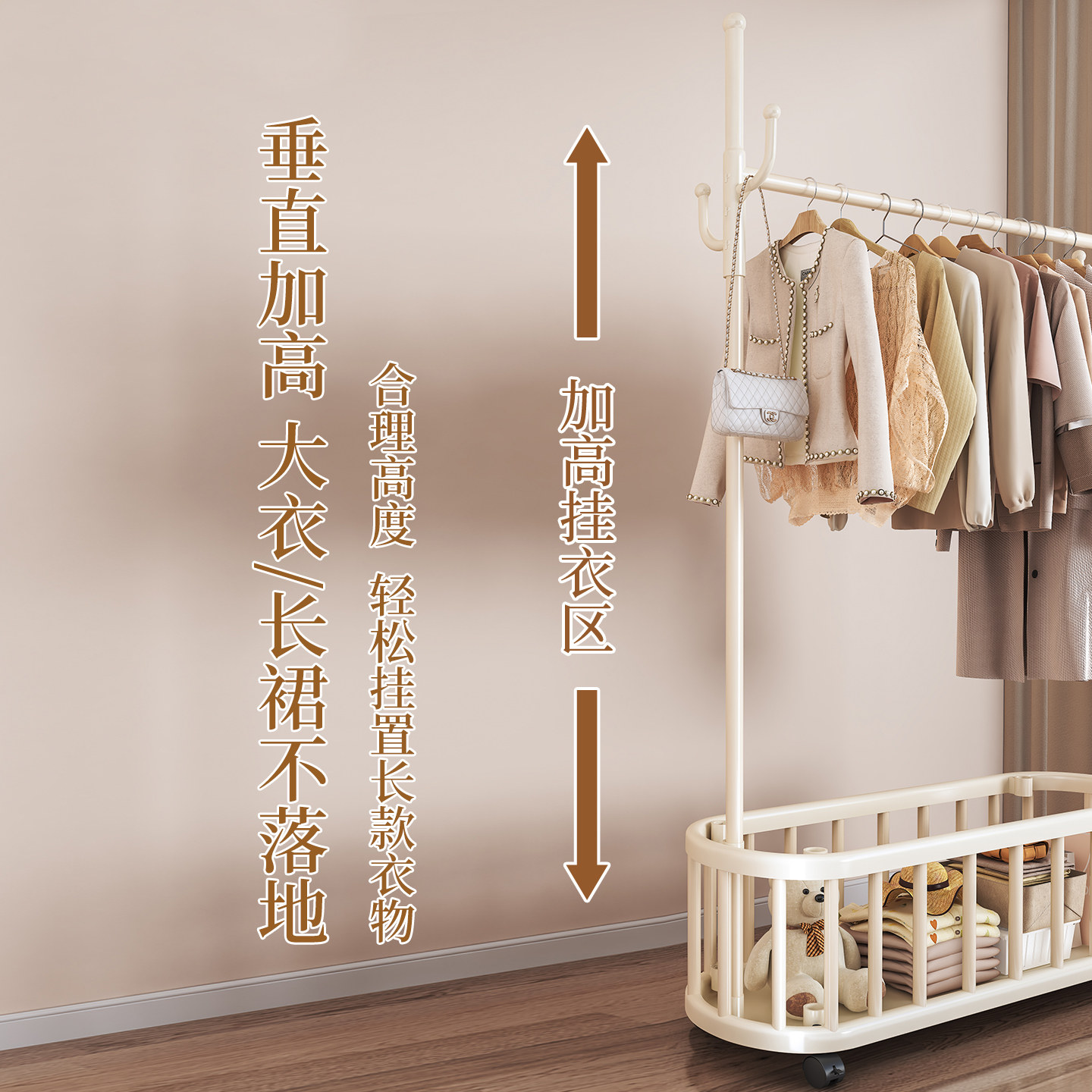 晾衣架落地家用可移动卧室美容院挂衣服架子室内阳台简易杆衣帽架