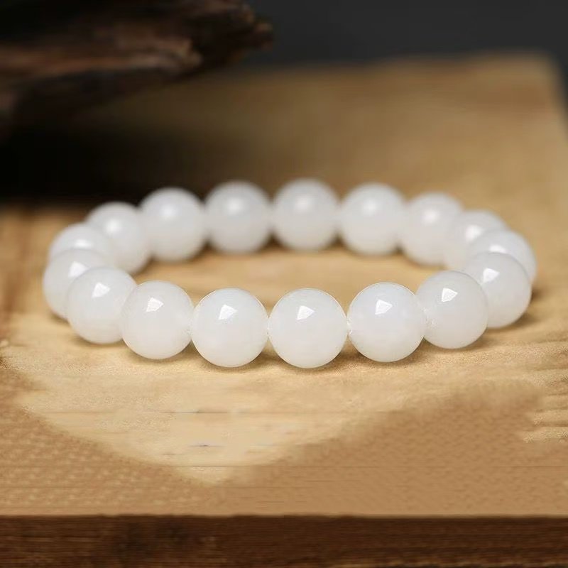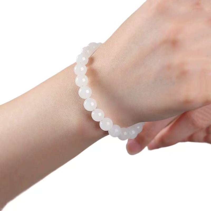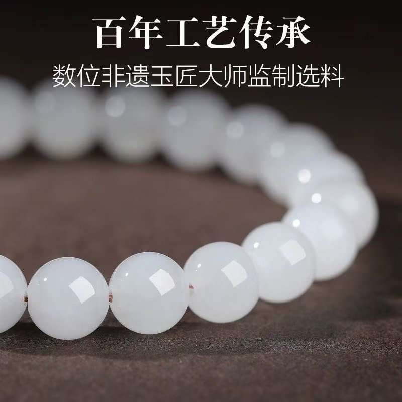 新疆和田玉手链羊脂白玉手串天然玉石饰品素圈送女友闺蜜生日礼物