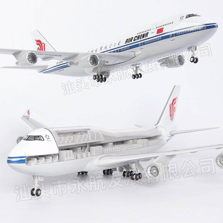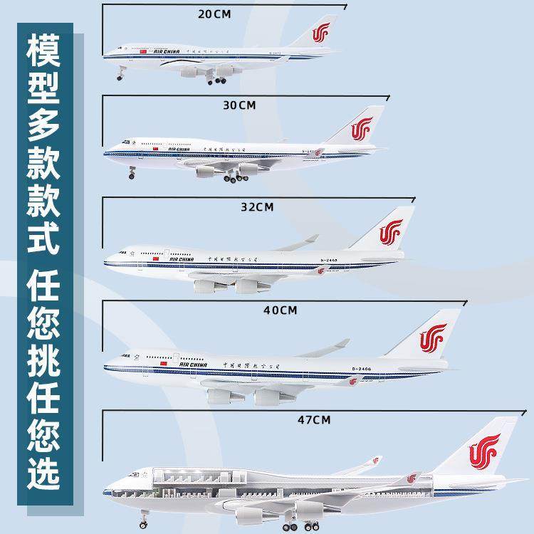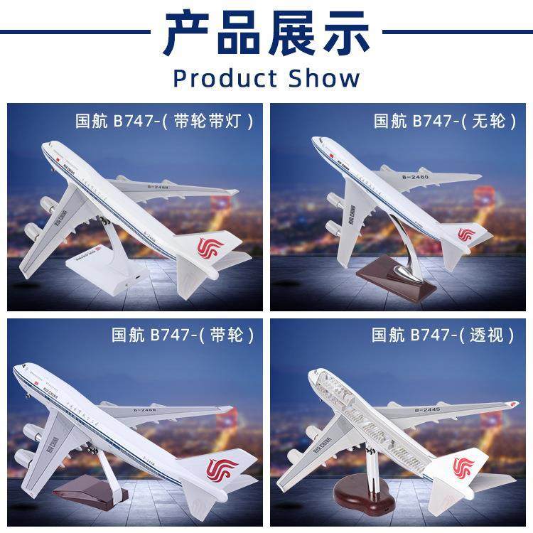 透视飞机模型仿真中国国航B747航模可视化带轮灯光客机航模饰品拉车