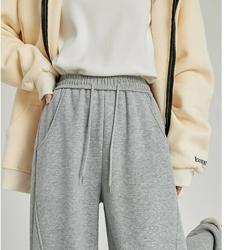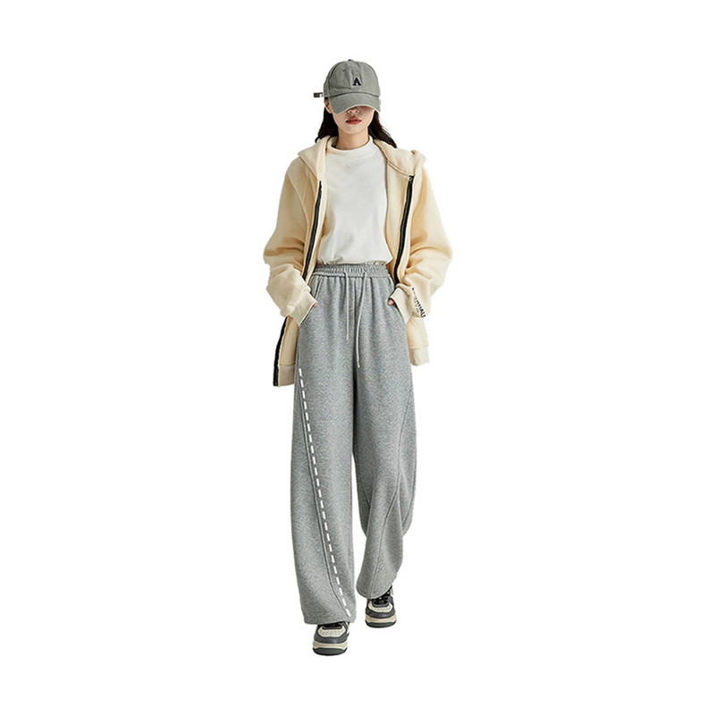 SIINSIIN加绒卫裤女2025新款阔腿运动裤休闲长裤冬季白色直筒裤子