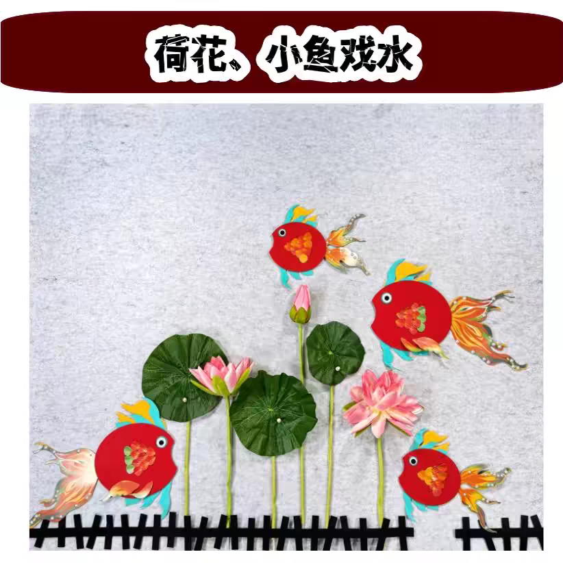 幼儿园新年环创材料小鱼戏水荷塘仿真大荷花荷叶系列墙贴装饰壁饰