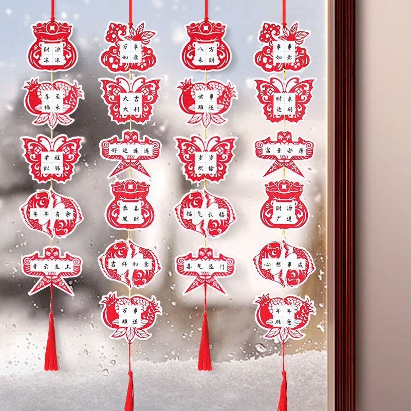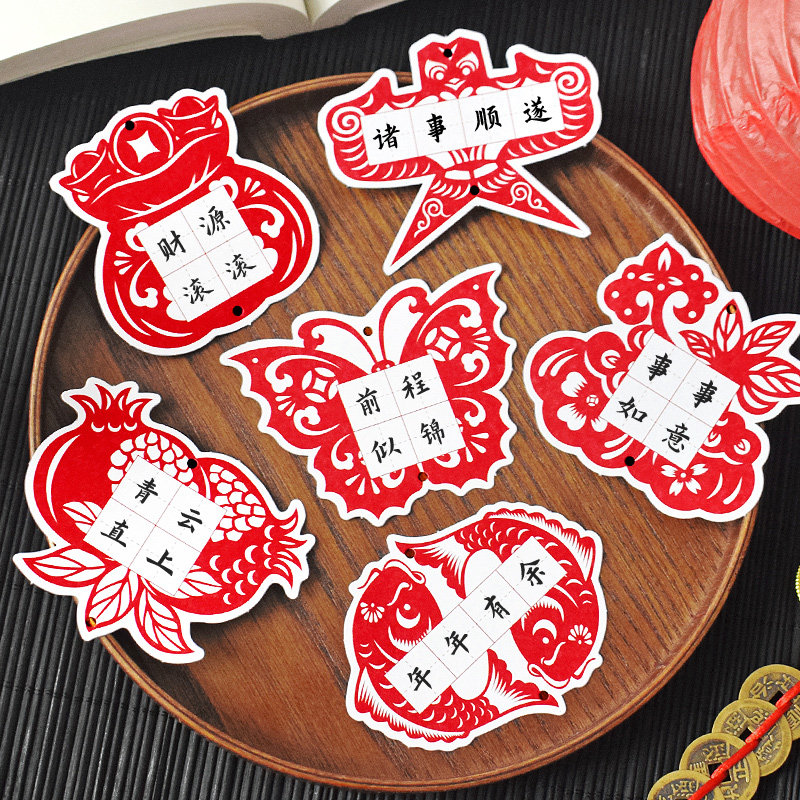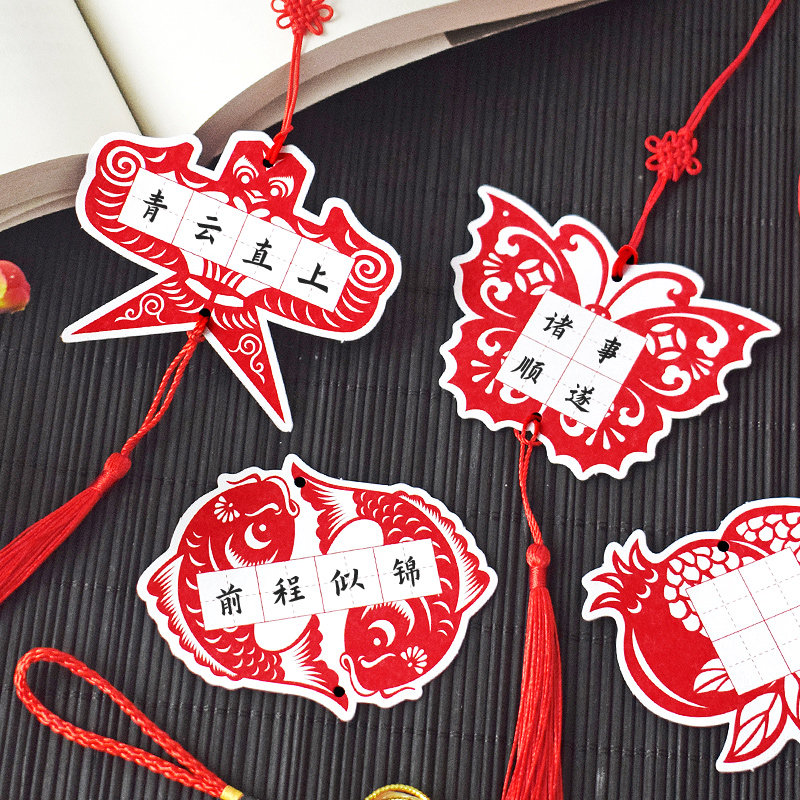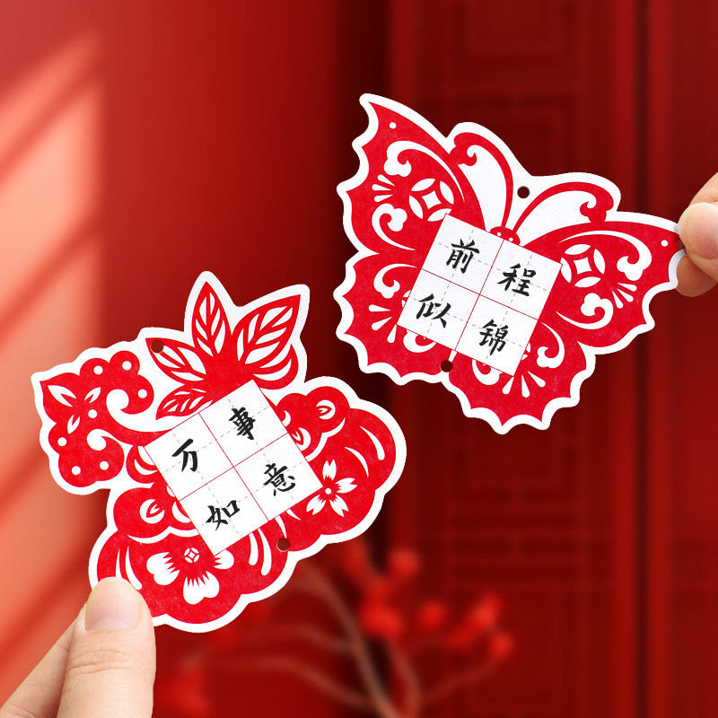 中国风国潮剪纸硬笔书法作品纸开学幼儿园儿童田字格迷你祝福语装饰吊卡学校练字培训班教室风筝蝴蝶自制挂卡